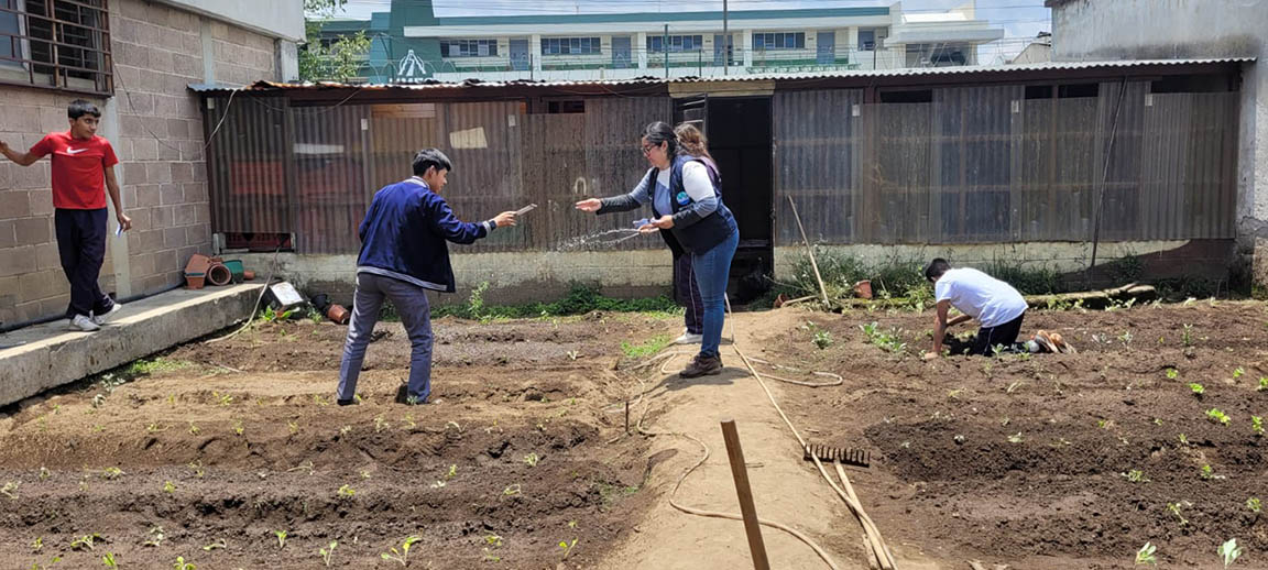 Con el propósito de fortalecer los procesos de enseñanza-aprendizaje en torno a la agricultura familiar y la nutrición, el Ministerio de Agricultura, Ganadería y Alimentación (MAGA), a través de la Agencia Municipal de Extensión Rural (AMER) de Quetzaltenango y la nutricionista de Agricultura Sensible a la Nutrición, brindaron asistencia técnica para el establecimiento de un huerto escolar con fines pedagógicos en el Instituto Nacional Experimental Gabriel Arriola Porres (INEGAP), de la cabecera de Quetzaltenango.