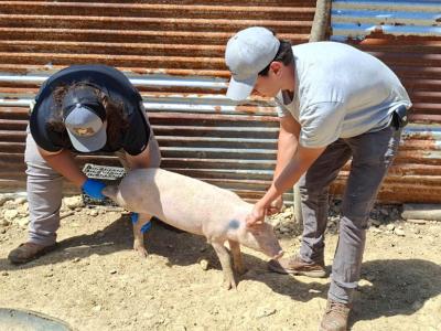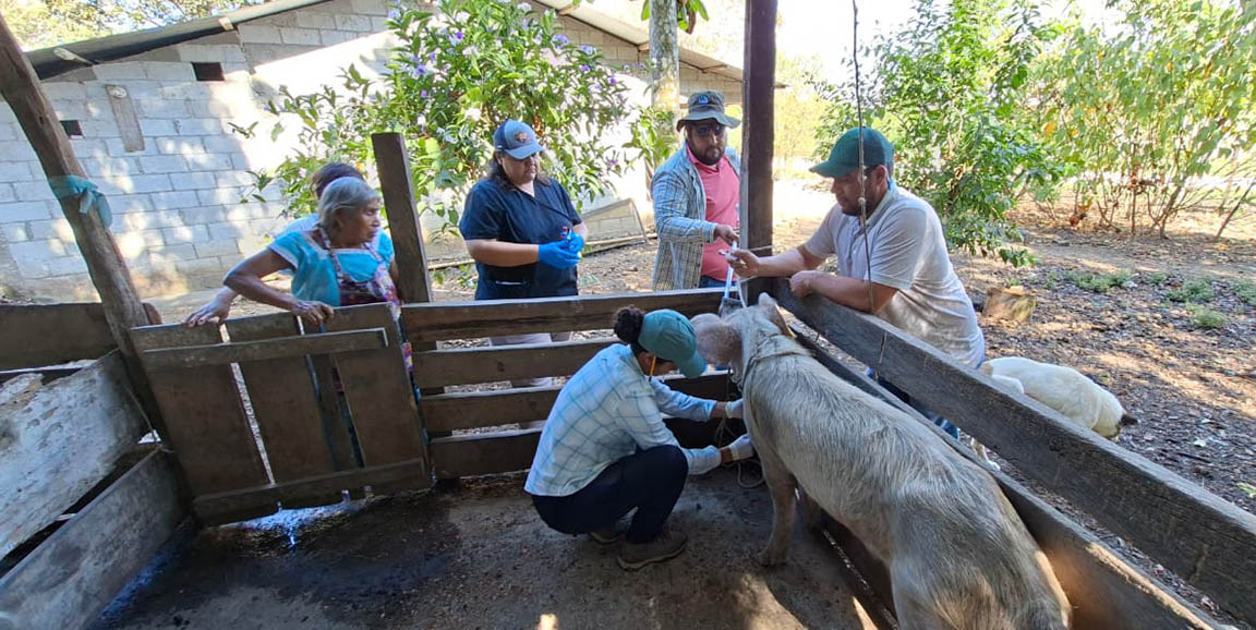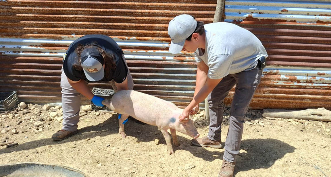 En las comunidades de El Paraíso y El Milagro, El Chal, Petén, se realizó una jornada de vitaminado, desparasitación y muestreo de cerdos, con el propósito de fortalecer la sanidad porcina y mejorar el estado nutricional de los animales pertenecientes a los productores beneficiados.