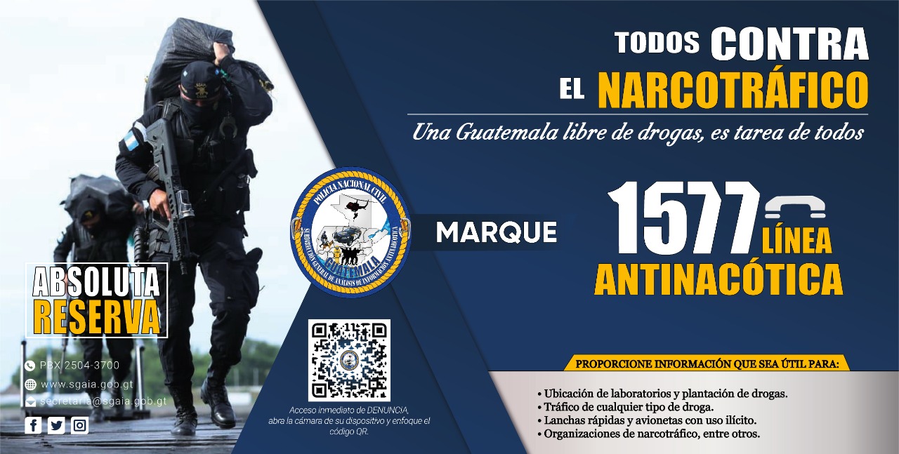 Además, se logró la erradicación de 1,673,905 matas de Marihuana, 6,047 matas de Amapola y 631, 154 arbustos de Hoja de Coca, y, entre los bienes incautados se cuentan gracias a las denuncias 95 vehículos, 258 celulares, 47 armas de fuego, 2,545 municiones, 75 tolvas para diferentes armas de fuego y en lo relacionado a efectivo Q 4,740,024.55, 417,361.00 dólares, 4,120.00 Pesos Mexicanos y 2,608.00 Lempiras.