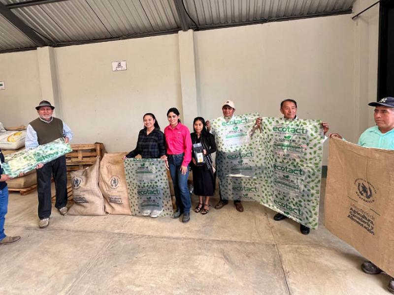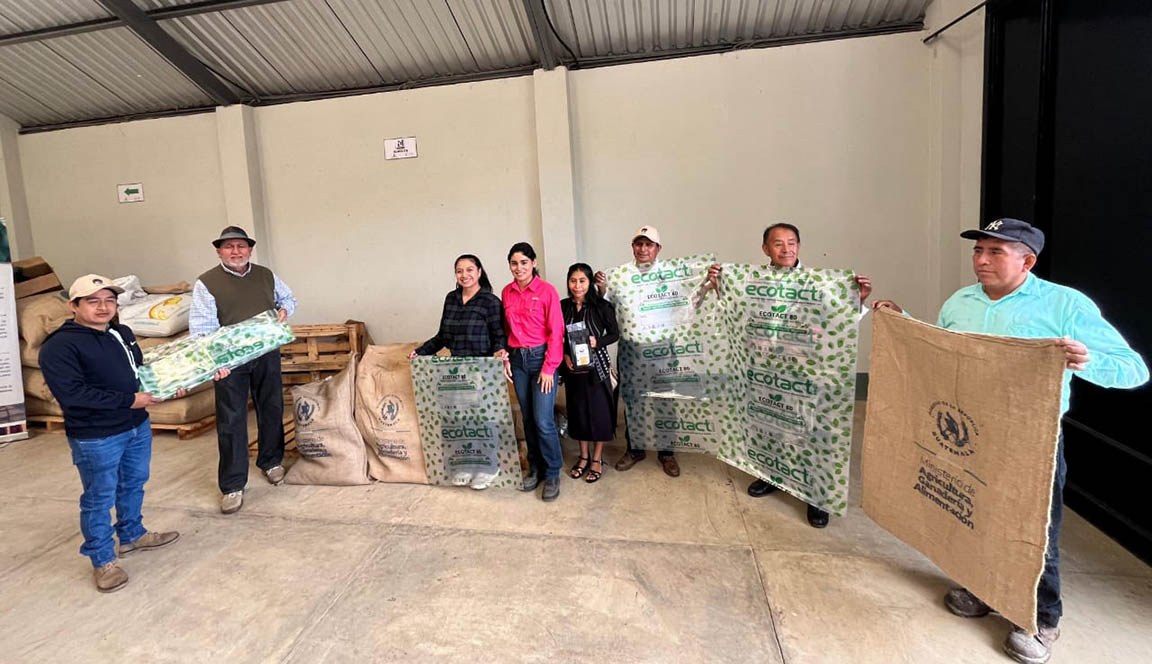 Durante la visita realizada por personal de la Dirección de Fortalecimiento para la Organización Productiva y Comercialización (DIFOPROCO), del Viceministerio de Desarrollo Económico Rural (VIDER), se realizó la entrega de sacos de yute y bolsas de polietileno a los socios de la cooperativa.