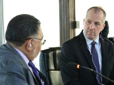 La delegación encabezada por Mike Naig, secretario de Agricultura del estado de Iowa, se reunión con el ministro Maynor Estrada, con quien acerca del fortalecimiento de la cooperación bilateral en temas agrícolas, identificación de oportunidades de desarrollo en el sector para mejorar la competitividad y sostenibilidad de las exportaciones agropecuarias.