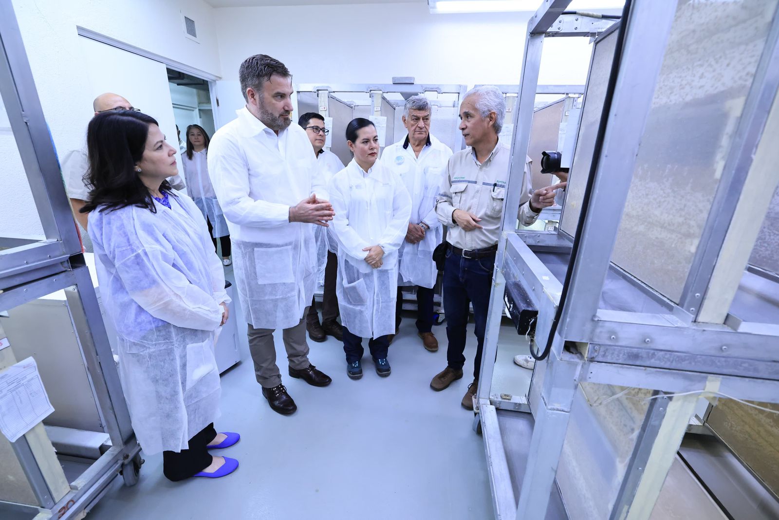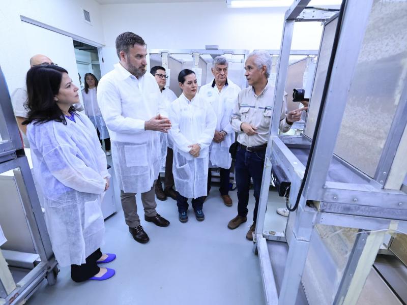 Durante la visita, las autoridades conocieron el proceso de producción de mosca estéril, que alcanza entre 1.3 y 1.8 billones de ejemplares, los cuales son liberados en los tres países como parte de una estrategia integral para combatir la plaga y proteger la producción agrícola.