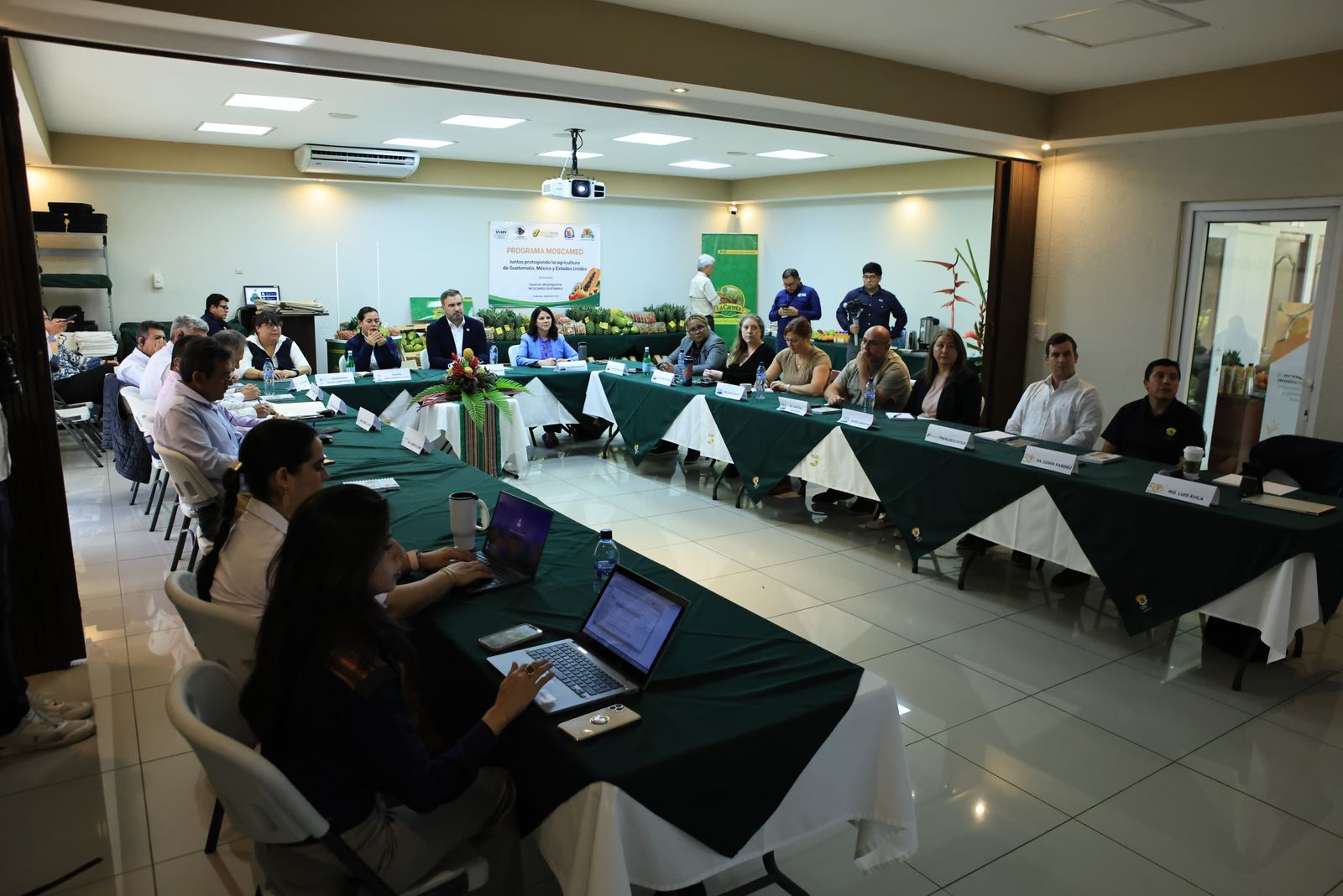 En la actividad participaron: la ministra de Agricultura, Ganadería y Alimentación, María Fernanda Rivera Dávila; la viceministra de Sanidad Agropecuaria y Regulaciones (VISAR), Mayra Motta; el embajador de EE. UU. en Guatemala, Tobin Bradley; el director de Sanidad Vegetal de México, Francisco Ramírez, y el director de MOSCAMED Guatemala, Jorge López.