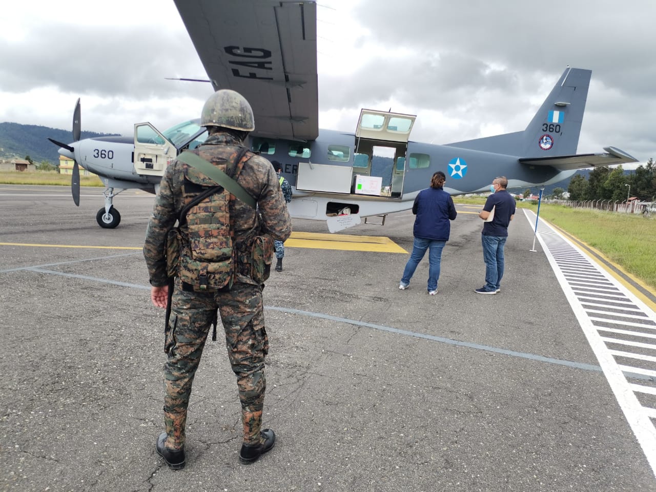 El Ejército de Guatemala a través de la Fuerza Aérea Guatemalteca, desplegó esta mañana dos aeronaves Caravan, que realizaron operaciones de traslado aéreo de 16 mil 400 dosis de vacunas contra el COVID-19, desde la ciudad capital hacia los departamentos de Izabal, Huehuetenango, San Marcos, Petén y Alta Verapaz.