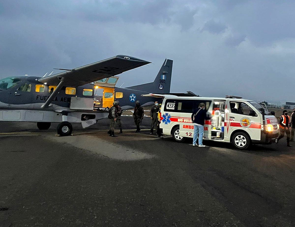 Este 27 de marzo, la Fuerza Aérea Guatemalteca, en coordinación con el Instituto Guatemalteco de Seguridad Social, efectuó el traslado aeromédico de los socorristas Luis Alfredo Ramos Ventura y Patricia Raymundo Cruz, quienes forman parte de los Bomberos Municipales Departamentales y que resultaron con quemaduras mientras combatían un incendio forestal, el cual se registró en la comunidad San Francisco, del municipio de Chiché, Quiché.