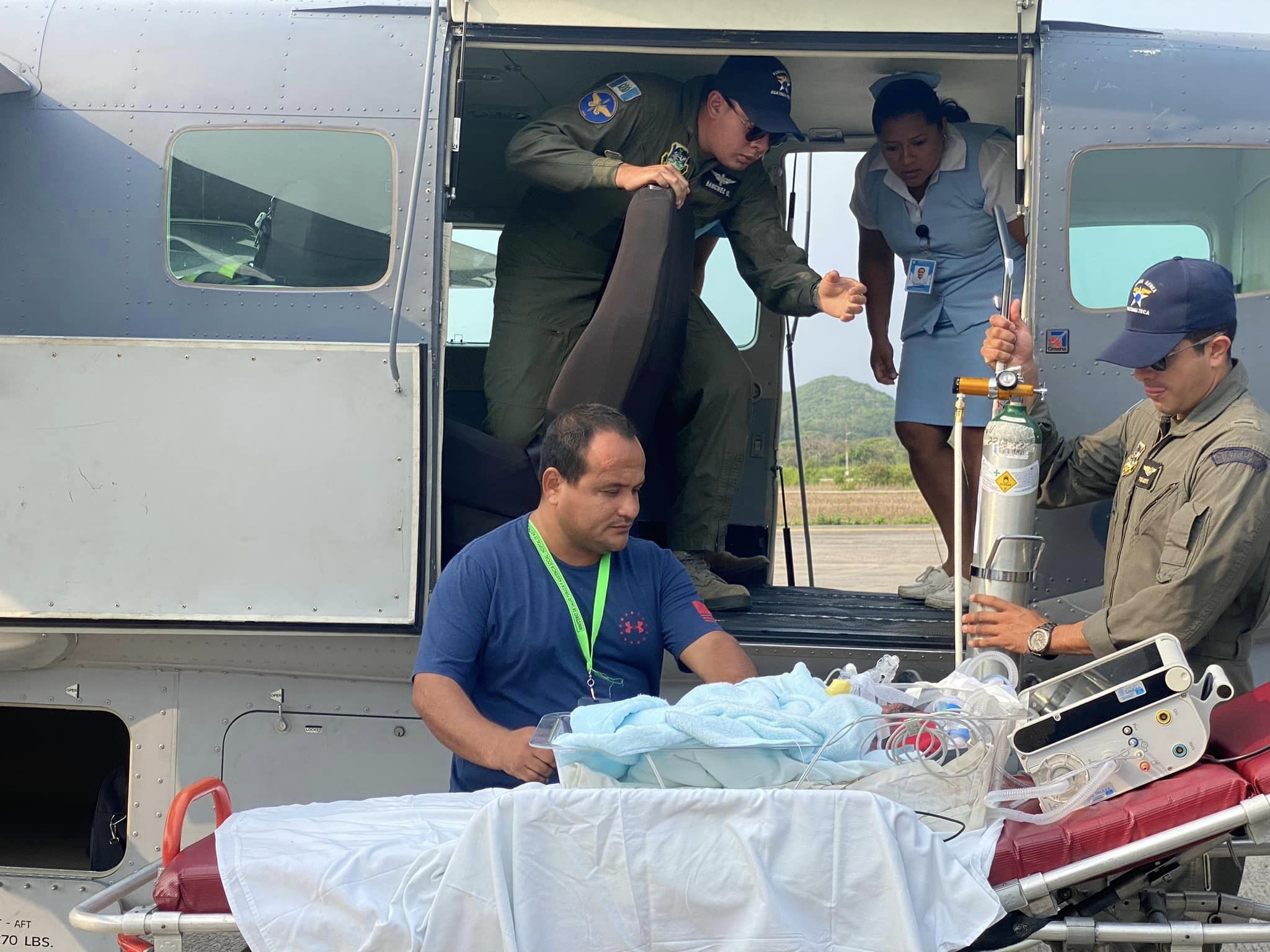 El miércoles 4 de mayo, la Fuerza Aérea Guatemalteca, a través del Comando Aéreo del Norte “Teniente Coronel Danilo Eugenio Henry Sánchez”, realizó la evacuación aeromédica de dos menores de edad por complicaciones médicas, desde el departamento de Petén, hacia la ciudad capital. El primer traslado fue el de un recién nacido prematuro de un día de nacido, quien presentó complicaciones médicas post parto, por lo que fue necesario trasladarlo desde el Hospital de Melchor de Mencos en ese departamento, hacia la ciudad capital, de donde posteriormente sería trasladado a un centro asistencial para su evaluación y tratamiento.