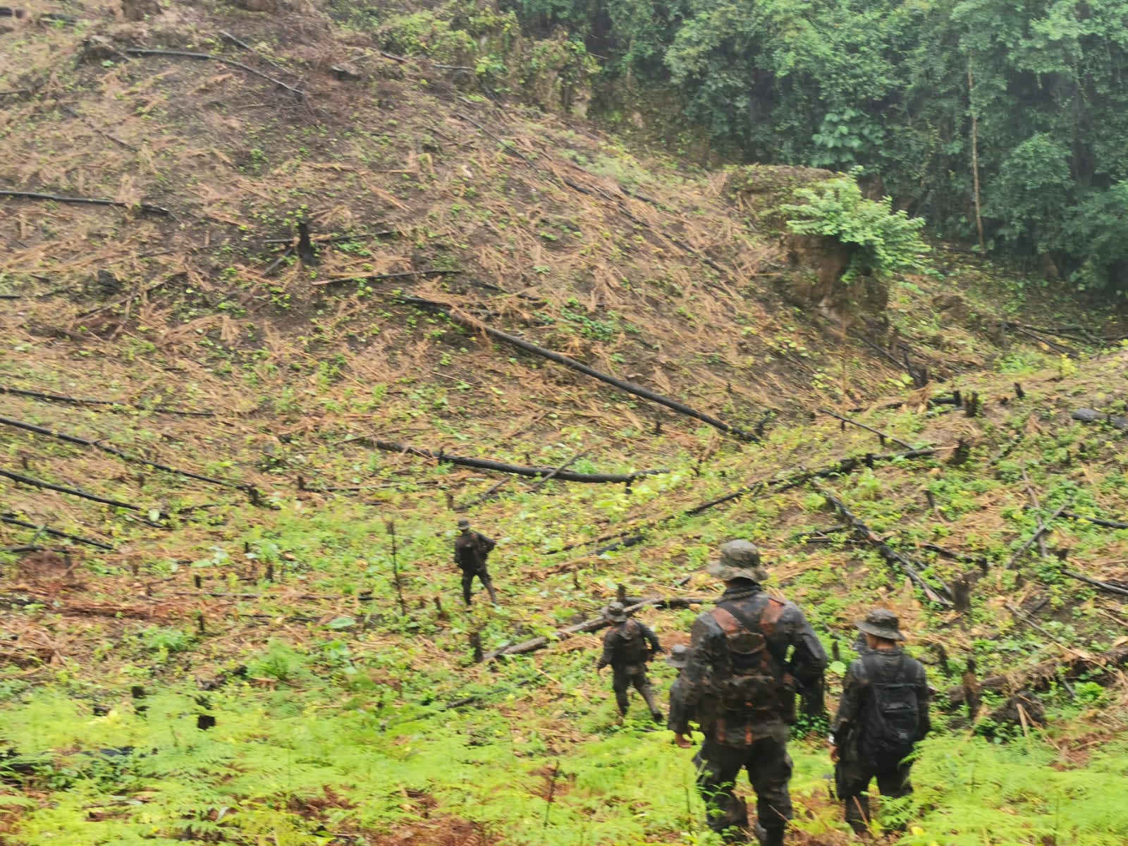 Fuerzas de Tierra del Ejército localizan plantaciones de coca y marihuana en Petén.