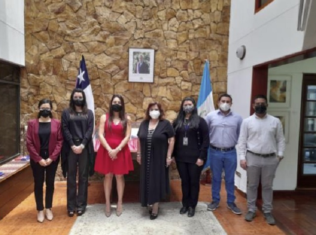 Guatemala, 9 de septiembre de 2021. Funcionarios del Ministerio de Relaciones Exteriores (Minex), encabezados por la directora general de Asuntos Consulares y Migratorios, Julia Arabella Woolfolk, visitaron la Embajada de Chile en Guatemala para conocer el Sistema de Atención Consular implementado por la Cancillería del país sudamericano.