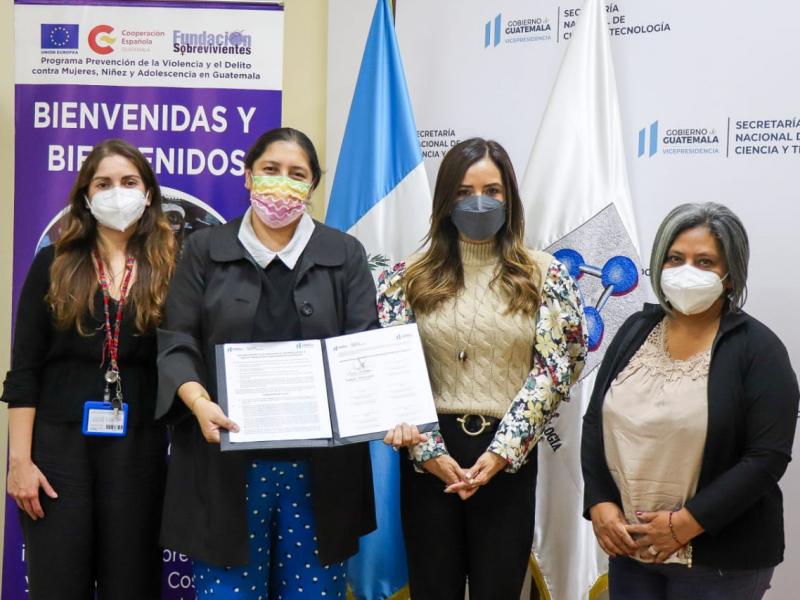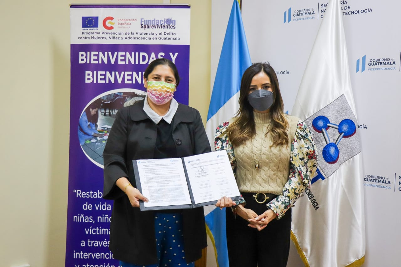 Ana Chan, secretaria nacional de la Senacyt, enfatizó que “sabemos que la creatividad y la innovación son claves para solucionar problemas que afectan a la sociedad. Nos sentimos complacidos de la adhesión de la Fundación Sobrevivientes, puesto que nos permitirá trabajar en conjunto en proyectos de innovación, transferencia de conocimiento y fortalecimiento del talento humano que contribuirán al desarrollo de las y los guatemaltecos”.