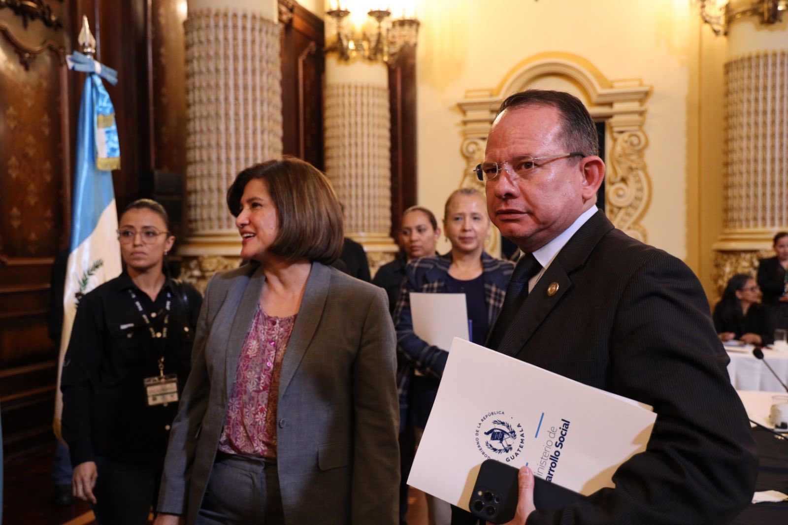 Este encuentro fue presidido por la Vicepresidenta de la República, Karin Herrera, y en su calidad de Coordinador Técnico de esta instancia el Ministro de Desarrollo Social, Abelardo Pinto. También participaron ministros, viceministros y representantes de diversas instituciones que integran el GEDS, para coordinar acciones en beneficio de los migrantes retornados a Guatemala.