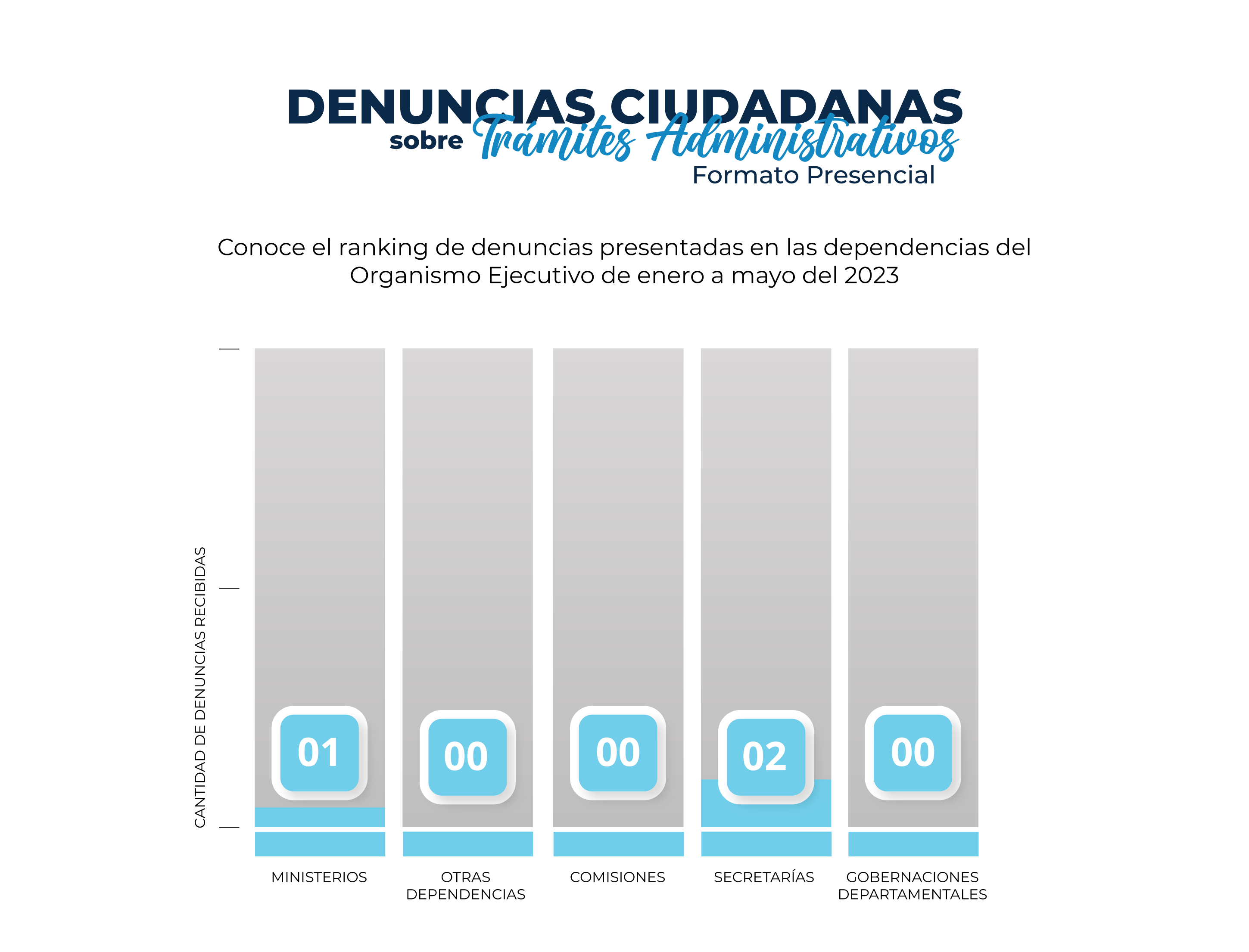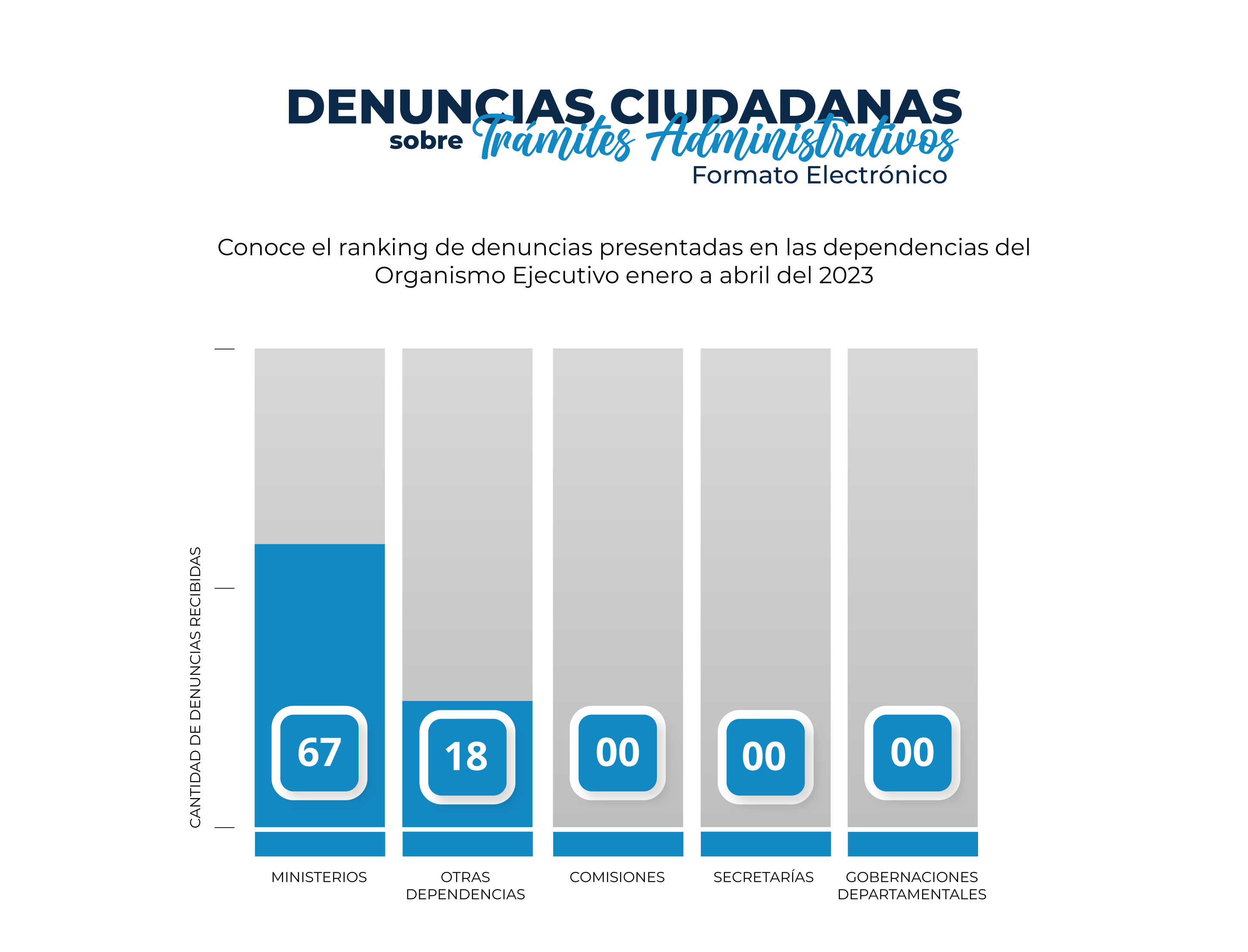 Guatemala, 31 de mayo 2023. – En el marco del Decreto 5-2021, “Ley para la Simplificación de Requisitos y Trámites Administrativos”, la Comisión Presidencial de Gobierno Abierto y Electrónico (GAE), publica el ranking de “Denuncias Ciudadanas” sobre trámites administrativos de Instituciones del Organismo Ejecutivo, presentadas en el primer cuatrimestre del año 2023, siendo el período que se reporta de enero a abril.