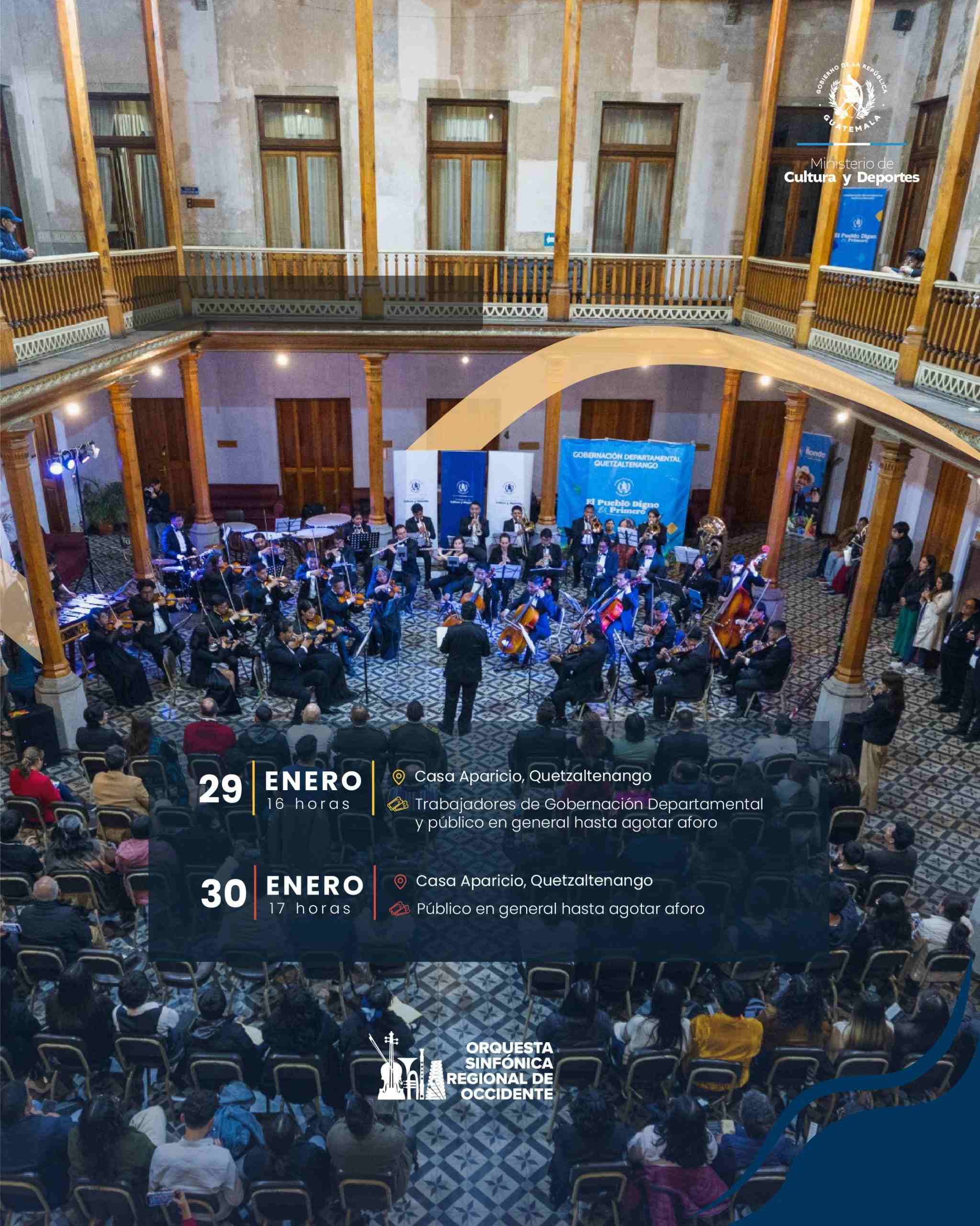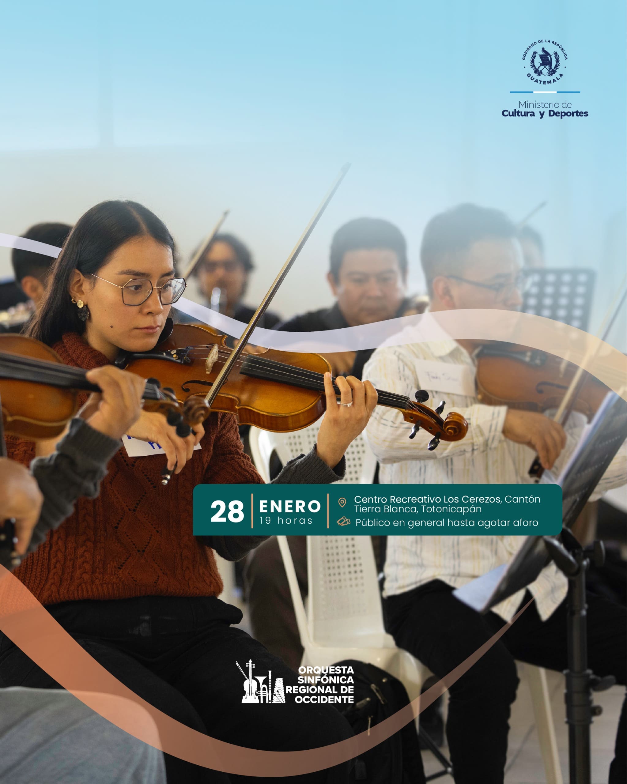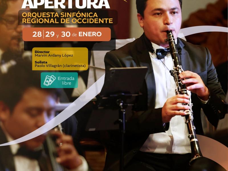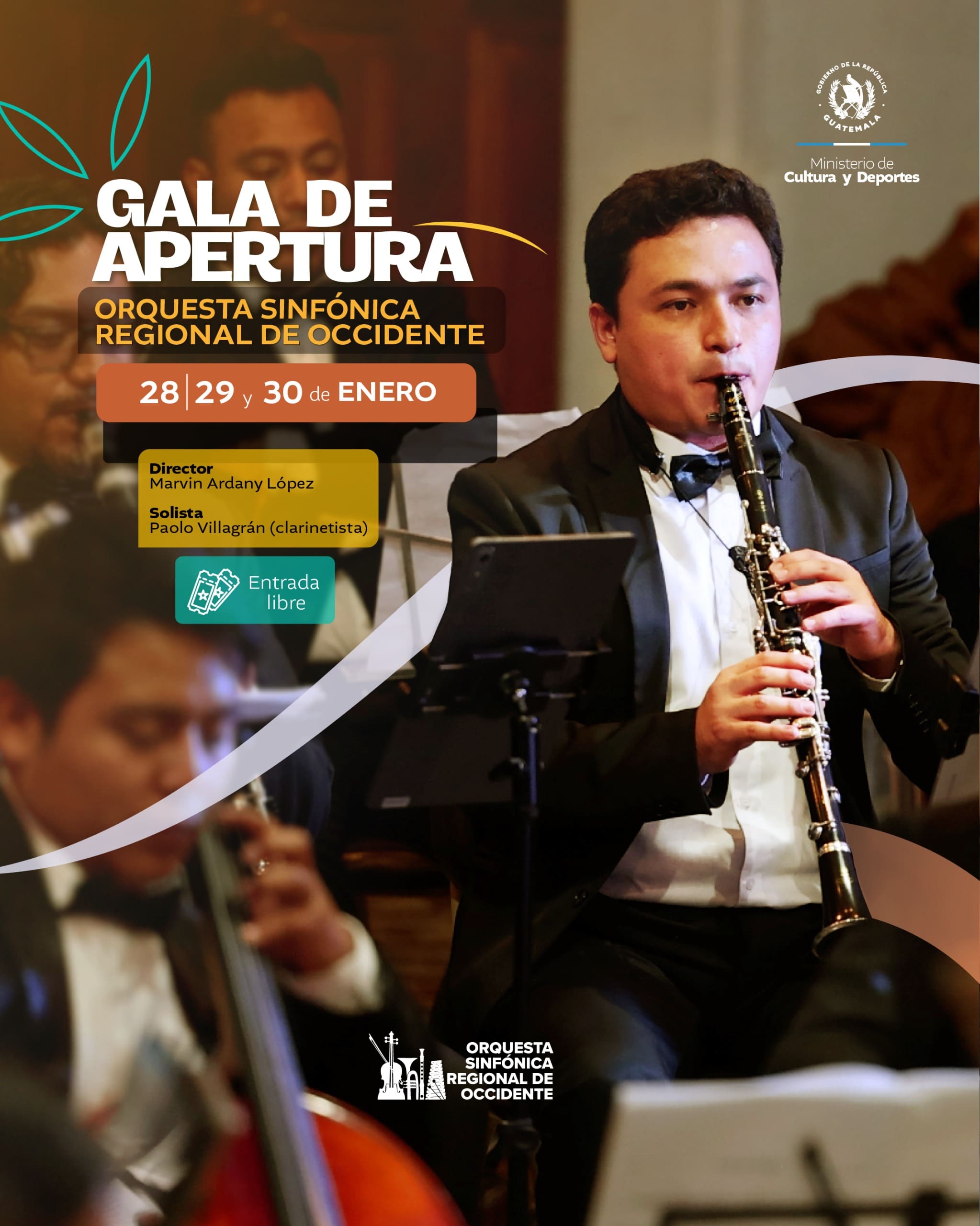 La Orquesta Sinfónica Regional de Occidente te invita a disfrutar de su Gala de Apertura, un evento que llenará de música a Totonicapán y Quetzaltenango con un repertorio excepcional bajo la batuta del maestro Marvin Ardany López y la participación del solista Pablo Villagrán.