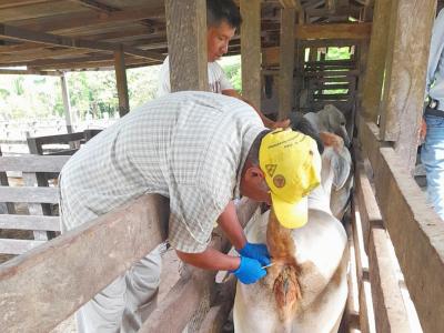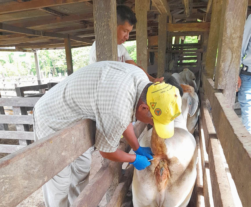 Durante la actividad se realizaron procedimientos de muestreo serológico, prueba de tuberculina y colocación de aretes de identificación a 18 bovinos que participarán en la próxima Expo Ganadera, que se realizará el 18 de junio de 2025 en la finca La Candelaria, San Benito, Petén.