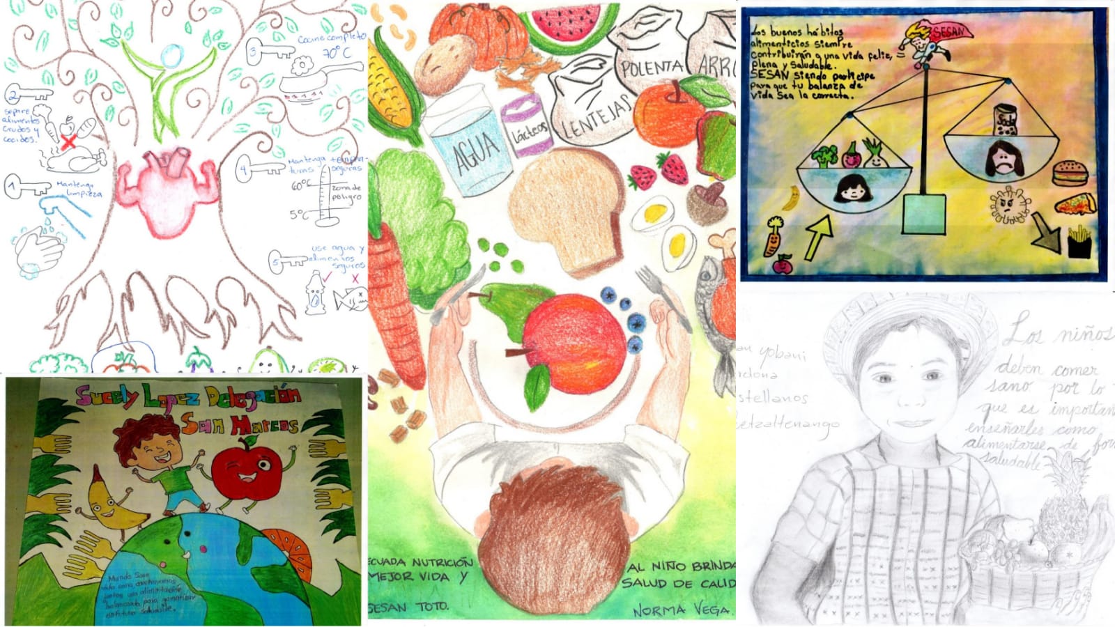 Veinte participantes de las oficinas centrales y Delegaciones Departamentales de la Secretaría de Seguridad Alimentaria y Nutricional (Sesan) demostraron sus habilidades en dibujo, en el concurso en conmemoración del Día Mundial de la Alimentación, tomando como tema central la seguridad alimentaria y nutricional (SAN) en sus obras.