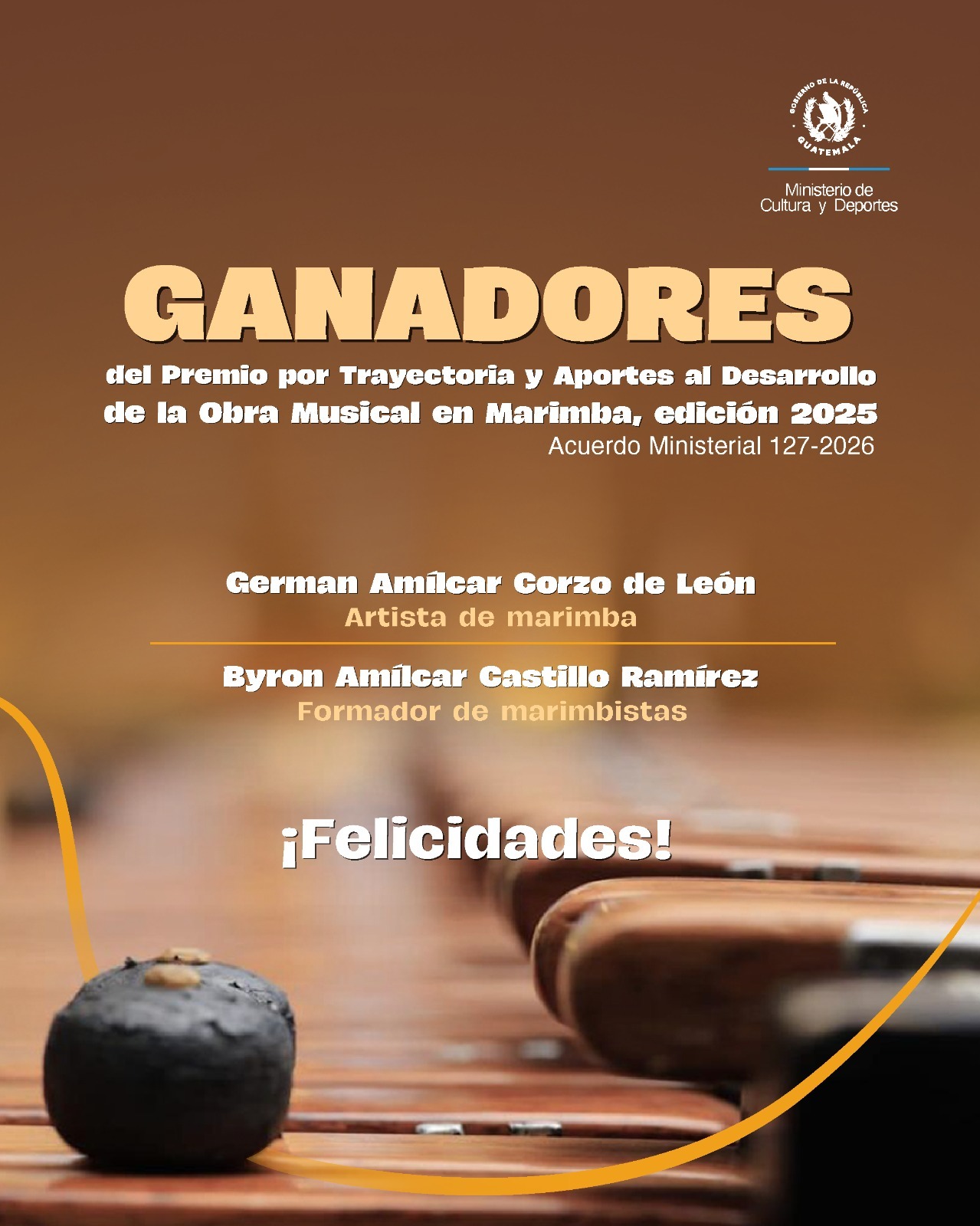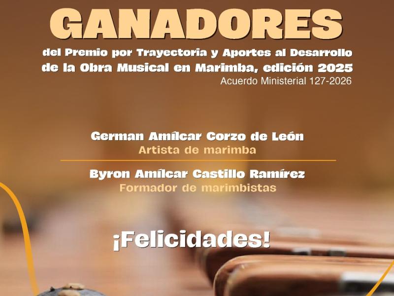 Celebramos a los ganadores del Premio por Trayectoria y Aportes al Desarrollo de la Obra Musical en Marimba, edición 2025: