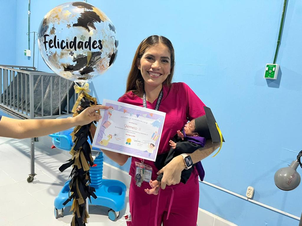 Y para celebrar su egreso, el personal médico y de enfermería del Hospital de Sayaxché, Petén, agasajó a los pequeños con una emotiva despedida que incluyó globos, vestimenta especial y diplomas de reconocimiento por haberse aferrado a la vida.