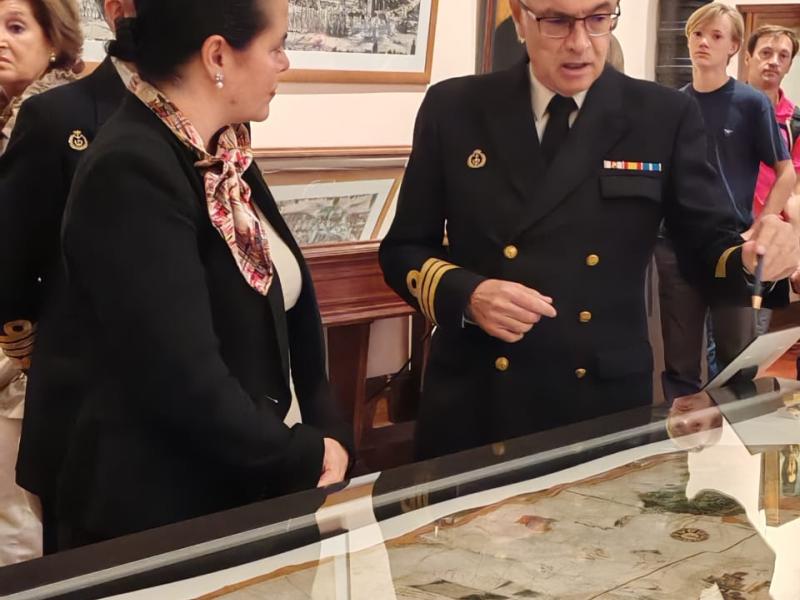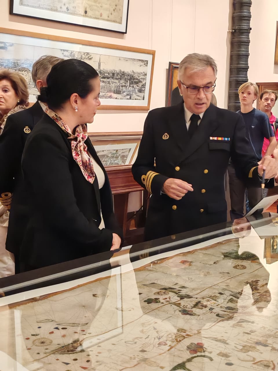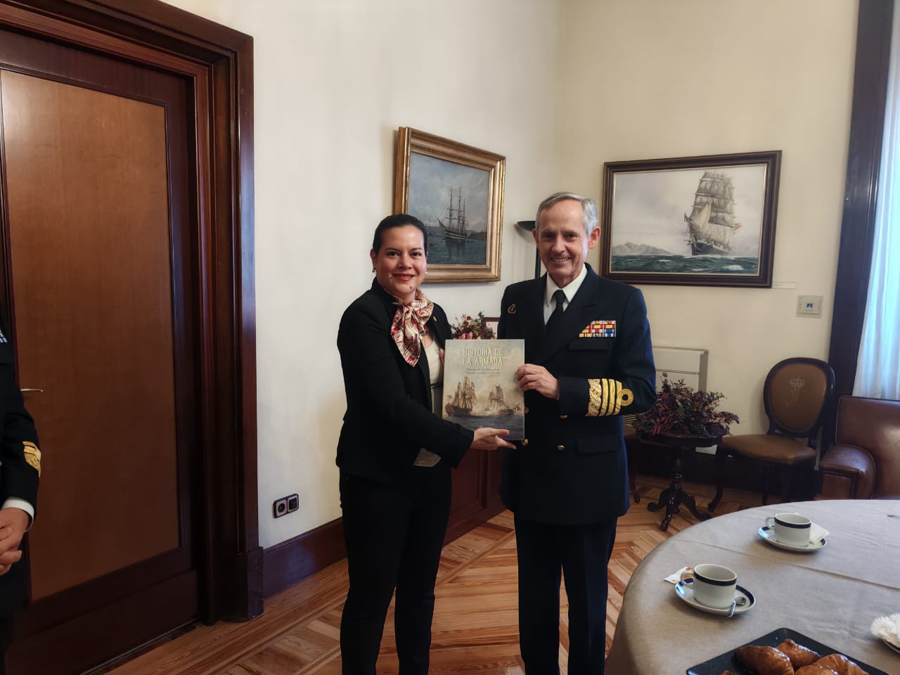 La ministra conversó con el almirante Gonzalo Sanz Alisedo, segundo Jefe del Estado Mayor de la Armada; vicealmirante Ignacio Paz García, Almirante de la división de planes del Estado Mayor de la Armada; coronel David Rodríguez Picallo, Jefe de la sección de Relaciones Exteriores del Estado Mayor de la Armada y el Capitán de Corbeta Felipe Areal Fernández, oficial del área de agregados de la sección de Relaciones Exteriores del Estado Mayor de la Armada.