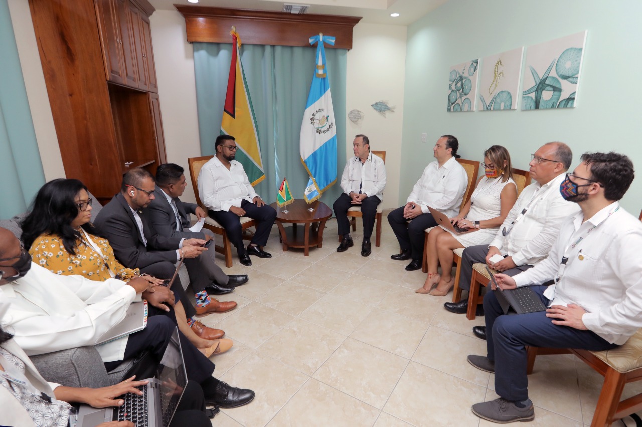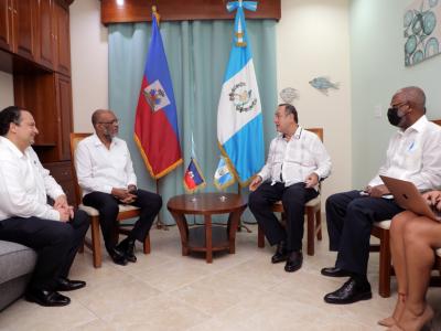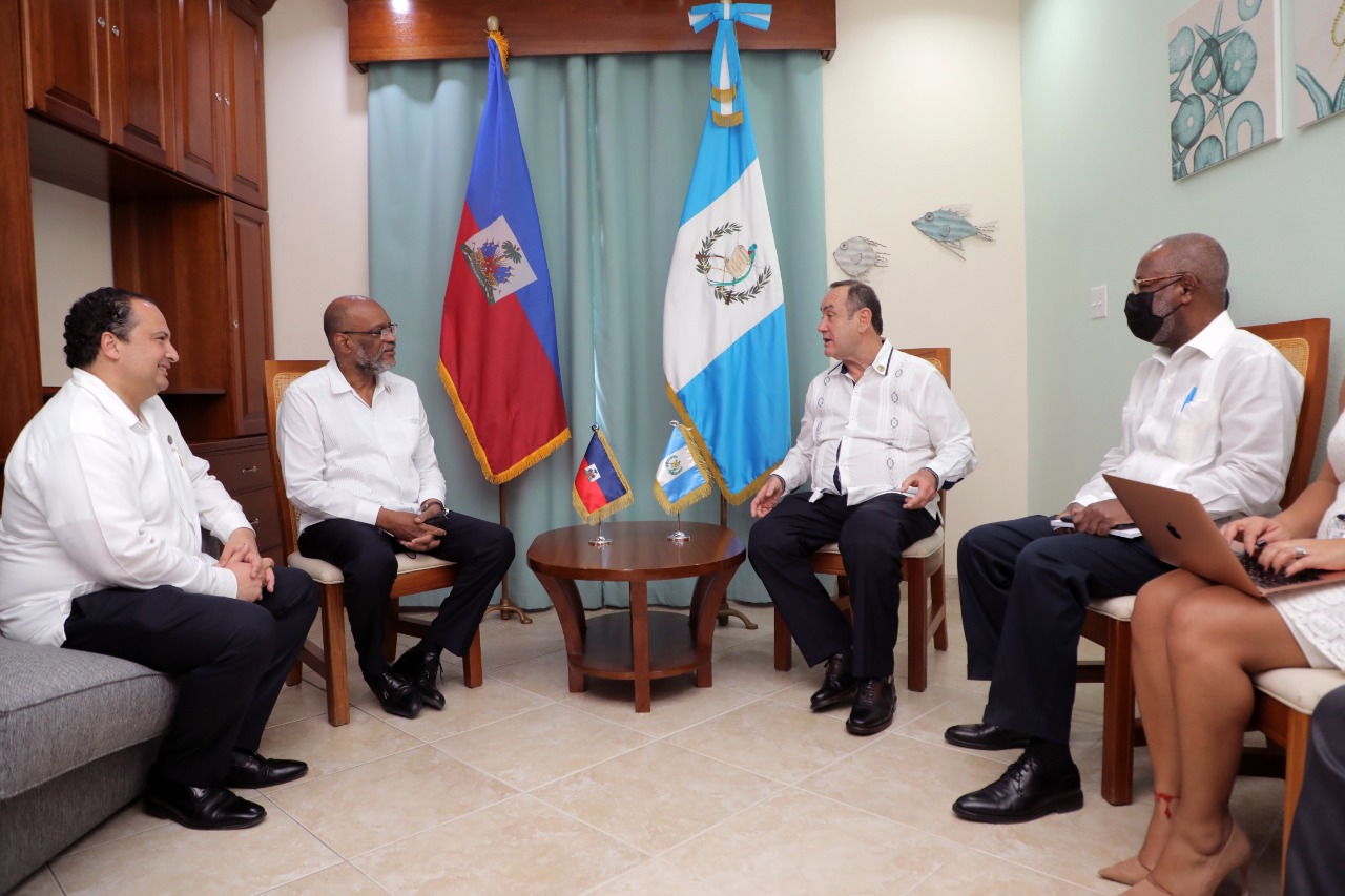 Durante su visita a Belice, con motivo de la IV Cumbre de Jefes de Estado y de Gobierno de los países que integran el SICA, el Presidente de la República, Alejandro Giammattei sostuvo reuniones bilaterales con Irfaan Ali y presidente de Guyana y el Ariel Henry, Primer Ministro de Haití para estrechar lazos de amistad y abordar temas de interés común.