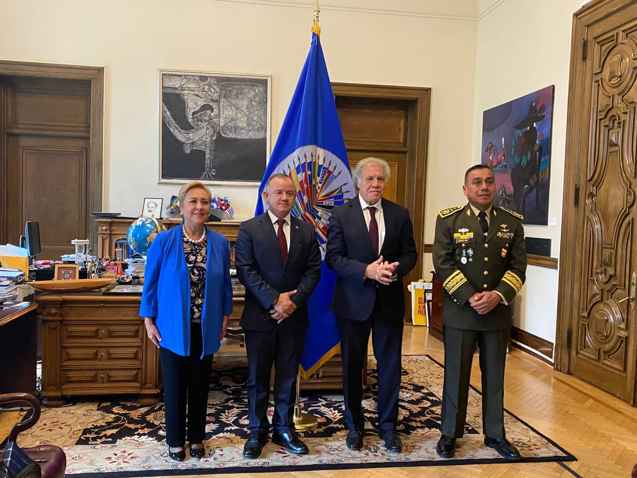 Posteriormente, la delegación guatemalteca acudió a la sede de la Organización de Estados Americanos (OEA) ubicada en Washington, D.C. En este lugar se reunieron con el Secretario General de la Organización, Luis Almagro. A la cita acudió también la Embajadora de Guatemala ante la OEA, Rita Claverie. En este lugar se analizaron asuntos prioritarios de la agenda conjunta y resaltaron la importancia de avanzar en los esfuerzos en materia de seguridad.