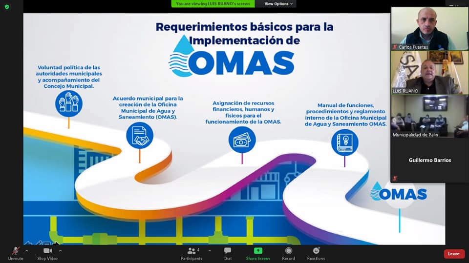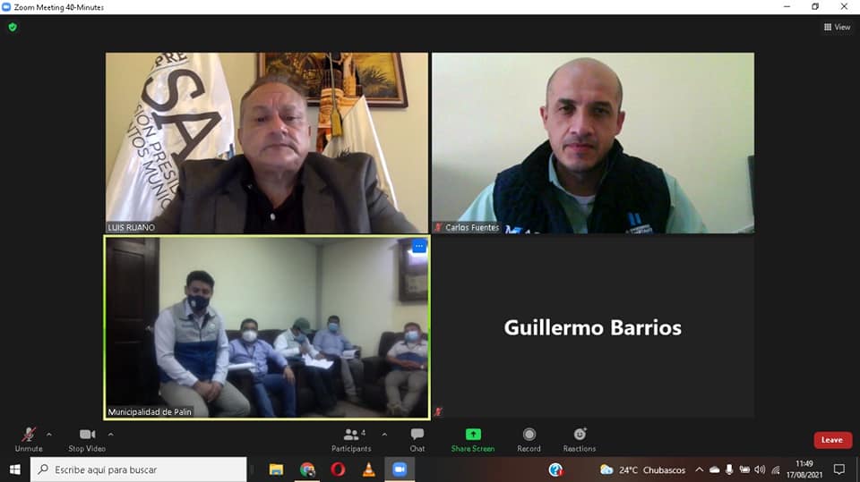 Ricardo Quezada, alcalde de Palín, junto a miembros del Concejo Municipal, se reunieron de forma virtual con el titular de la Comisión Presidencial de Asuntos Municipales Copresam quien realizó una presentación respecto de la importancia que tiene para las municipalidades, el contar con una Oficina Municipal de Agua y Saneamiento OMAS como estrategia urgente que permita atender las necesidades de la población y en especial, con el objetivo de contribuir a disminuir los índices de desnutrición en el país.