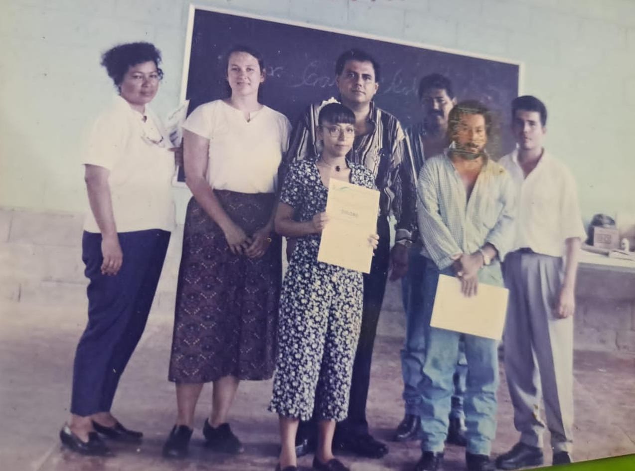 Las fotos antiguas compartidas por Gloria Mercedes Díaz reflejan su conexión con la salud comunitaria desde sus inicios en 1997 en Chachaualía, un poblado lejano perteneciente a Puerto Barrios, Izabal.