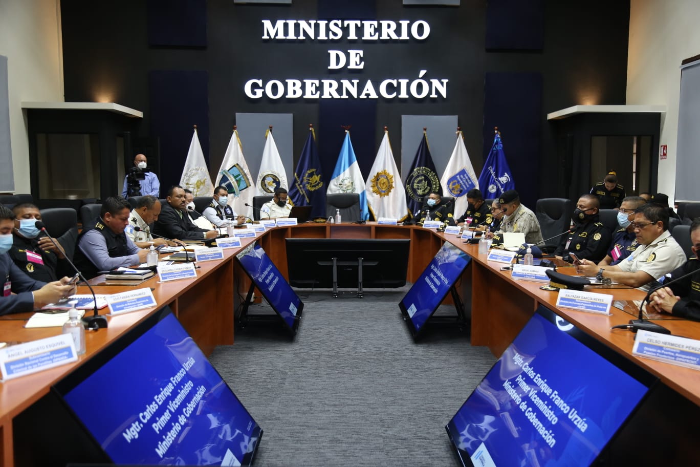 El primer viceministro del Ministerio de Gobernación (Mingob), Carlos Franco Urzúa, junto al director General de la Policía Nacional Civil (PNC), Héctor Hernández y mandos policiales, sostuvo una reunión con los jefes de las 20 especialidades de la Subdirección General de Investigación Criminal (SGIC) y la Subdirección General de Operaciones (SGO) de la institución.