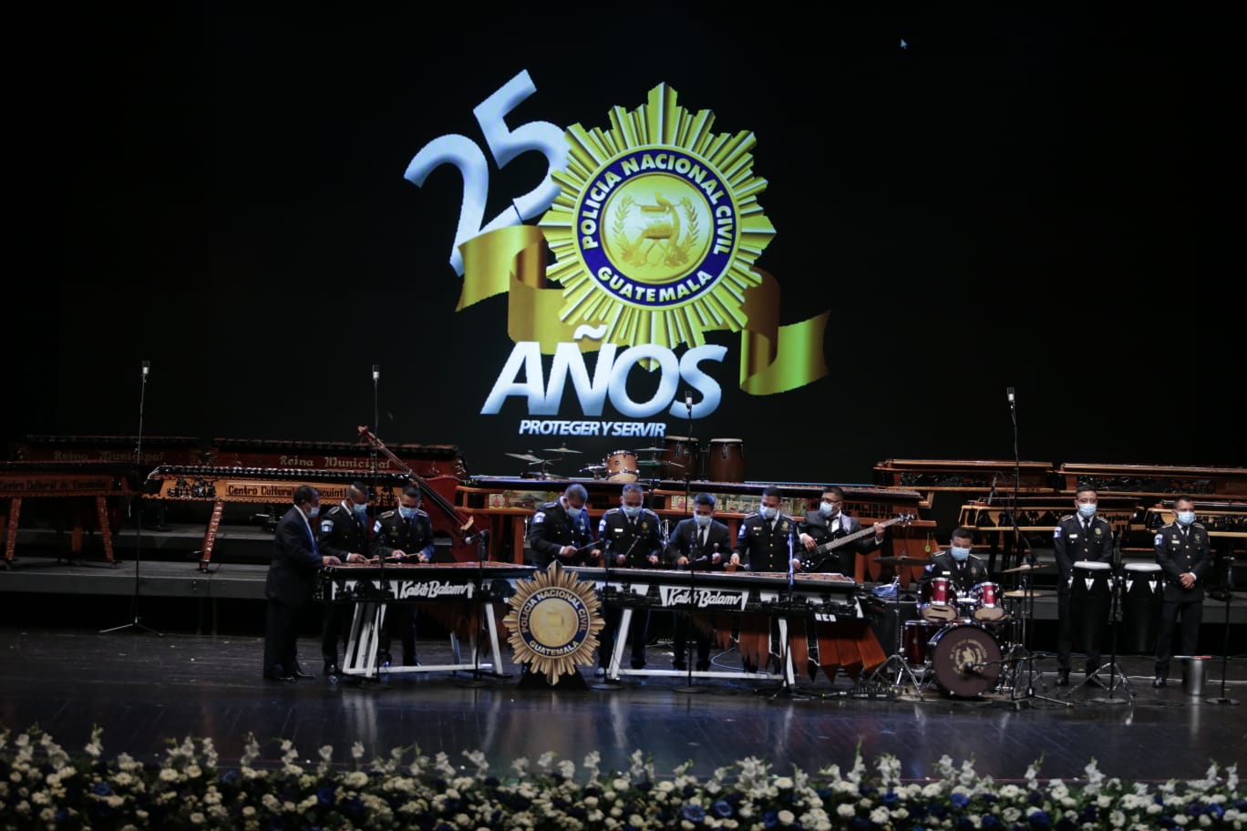 En el marco del 25 aniversario de la Policia Nacional Civil (PNC), se realizó un Ensamble de Marimbas en la Gran Sala Efraín Recinos del Centro Cultural Miguel Ángel Asturias. La velada cultural fue presidida por el ministro de Gobernación, David Napoleón Barrientos, también lo acompañaron sus viceministros, el director de la PNC, Héctor Hernández y la cúpula policial.