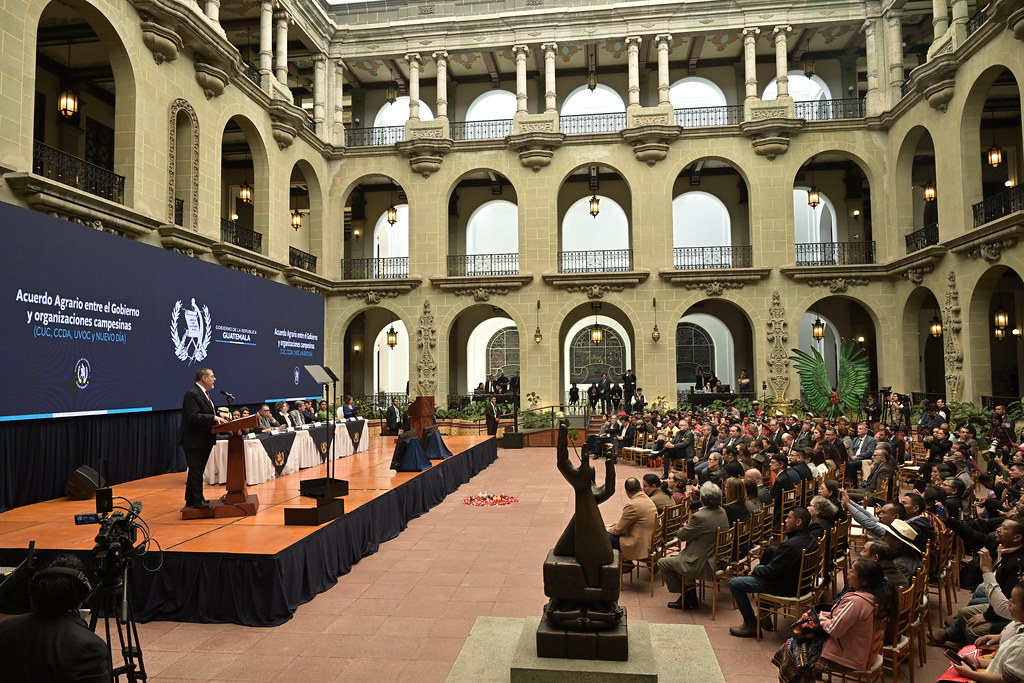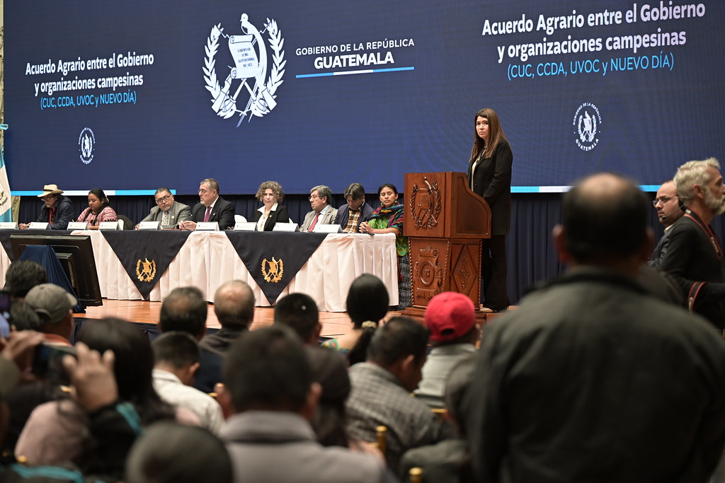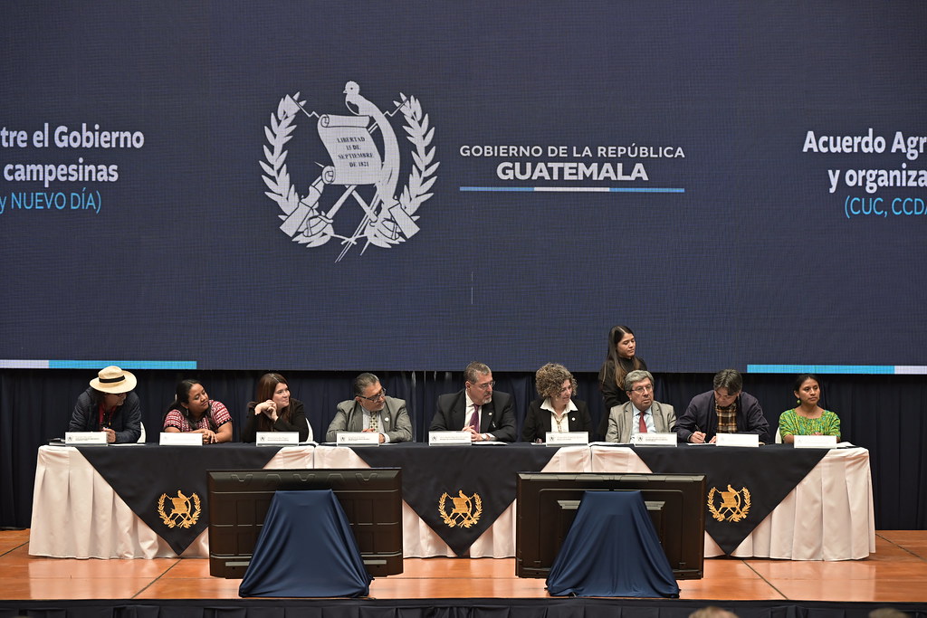 El Gobierno de Guatemala firmó Acuerdo Agrario con las comunidades campesinas, fruto del diálogo sostenido desde el periodo de la transición de gobierno, lo que permitió que tres semanas después de la toma de posesión de la nueva administración de gobierno, se llegara a importantes consensos que permitieron la firma del acuerdo para abordar temas en torno a cinco puntos priorizados: