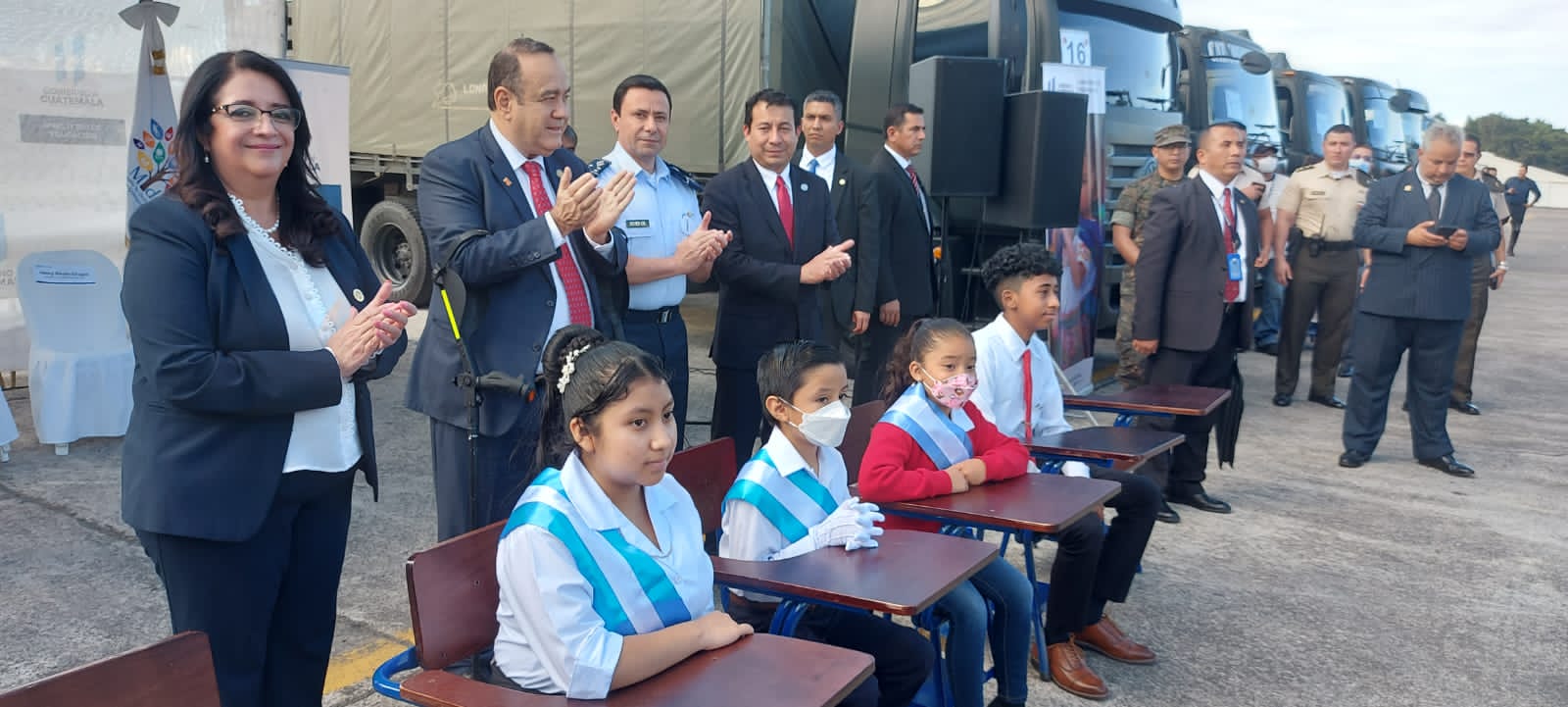 Este proceso de entrega, inició con un acto simbólico que se llevó a cabo en la rampa militar de la Fuerza Aérea Guatemalteca, ubicada en la zona 13 capitalina; el cual fue presidido por el señor Presidente de la República, Dr. Alejandro Giammattei Falla, acompañado del señor Ministro de la Defensa Nacional, el General de División, Henry Yovani Reyes Chigua, la Ministra de Educación, Claudia Patricia Ruíz Casasola y el Ministro de Desarrollo Social, Héctor Melvyn Caná Rivera.