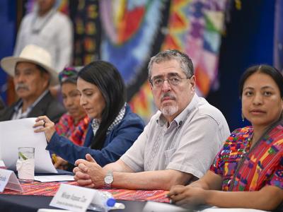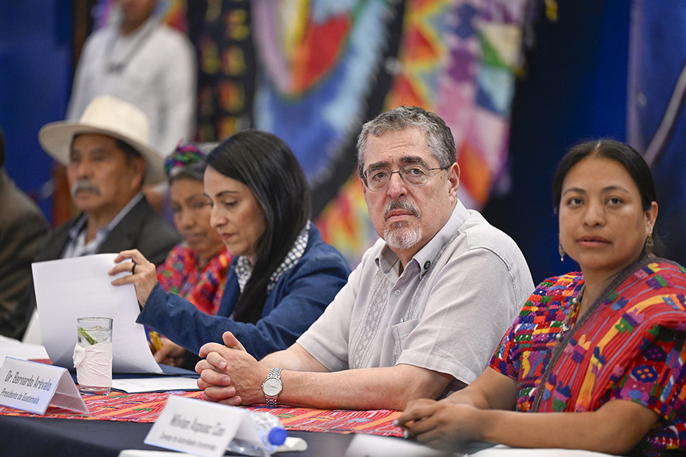En su intervención, el presidente Arévalo expresó: “Nuestra visita es parte de un diálogo que promovemos con ustedes a partir de la convicción de que es posible construir un país donde quepamos todos los pueblos... Mi gobierno se compromete con ustedes a construir un desarrollo que nos permita caminar en dignidad y dejar atrás el Estado racista del pasado”.