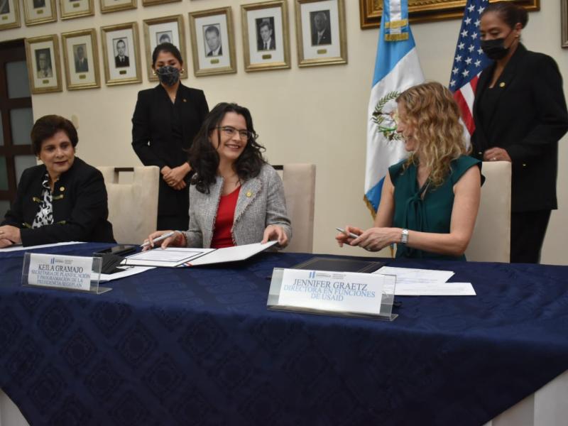 La firma del convenio estuvo a cargo de la Secretaria General de SEGEPLAN, Luz Keila G. Vilchez y la directora de USAID, Jennifer Graetz.