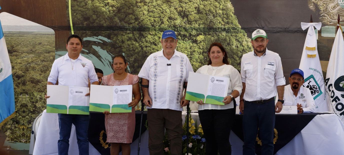 Comunidades de Petén recibieron este miércoles las prórrogas de tres contratos de concesiones forestales para el aprovechamiento y manejo integral de los recursos naturales renovables maderables y no maderables en la Zona de Uso Múltiple de la Reserva de la Biosfera Maya (RBM).