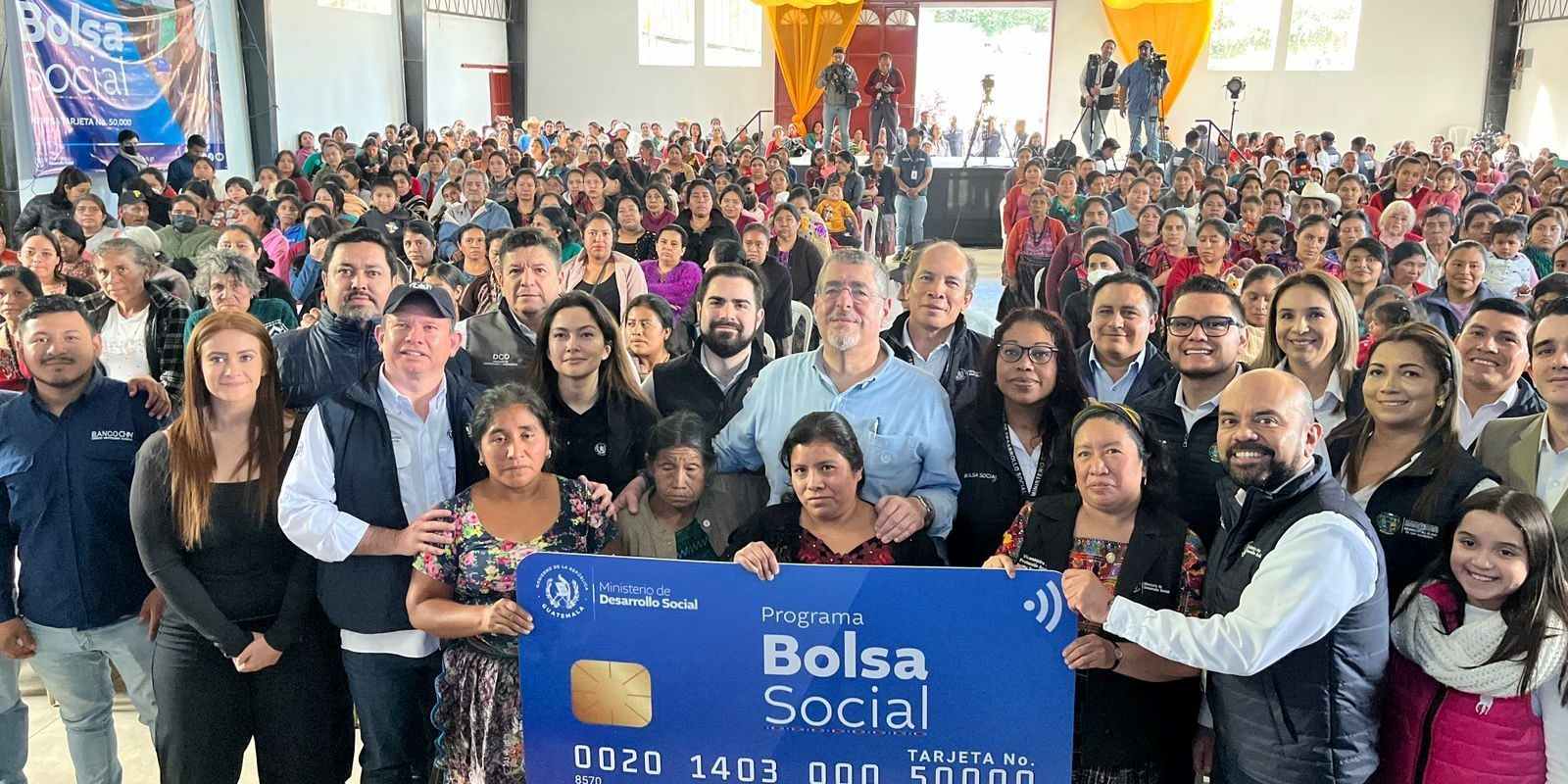 Para conmemorar la duplicación del padrón de beneficiarios del Programa Bolsa Social, el Ministerio de Desarrollo Social (Mides) realizó un acto simbólico para la entrega de la tarjeta número 50,000 en el Salón Municipal de la aldea El Carrizal, en el municipio de San Raymundo, con la participación del Presidente Bernardo Arévalo, el Ministro de Desarrollo Social, Abelardo Pinto y el Alcalde Luis Álvaro Queché.