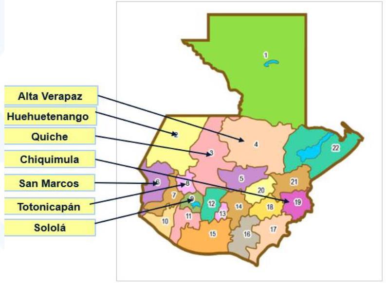 Se focaliza en 7 departamentos (Huehuetenango, Quiché, Alta Verapaz, Chiquimula, Totonicapán, San Marcos y Sololá), 9 áreas de salud y 139 municipios. Esto se debe a que es en estos lugares donde la niñez no alcanza la estatura que debería tener según su edad, hay mayor mortalidad materna, reside mayor cantidad de niñas y niños menores de cinco años y vive mayor población en el campo sin acceso a servicios básicos.