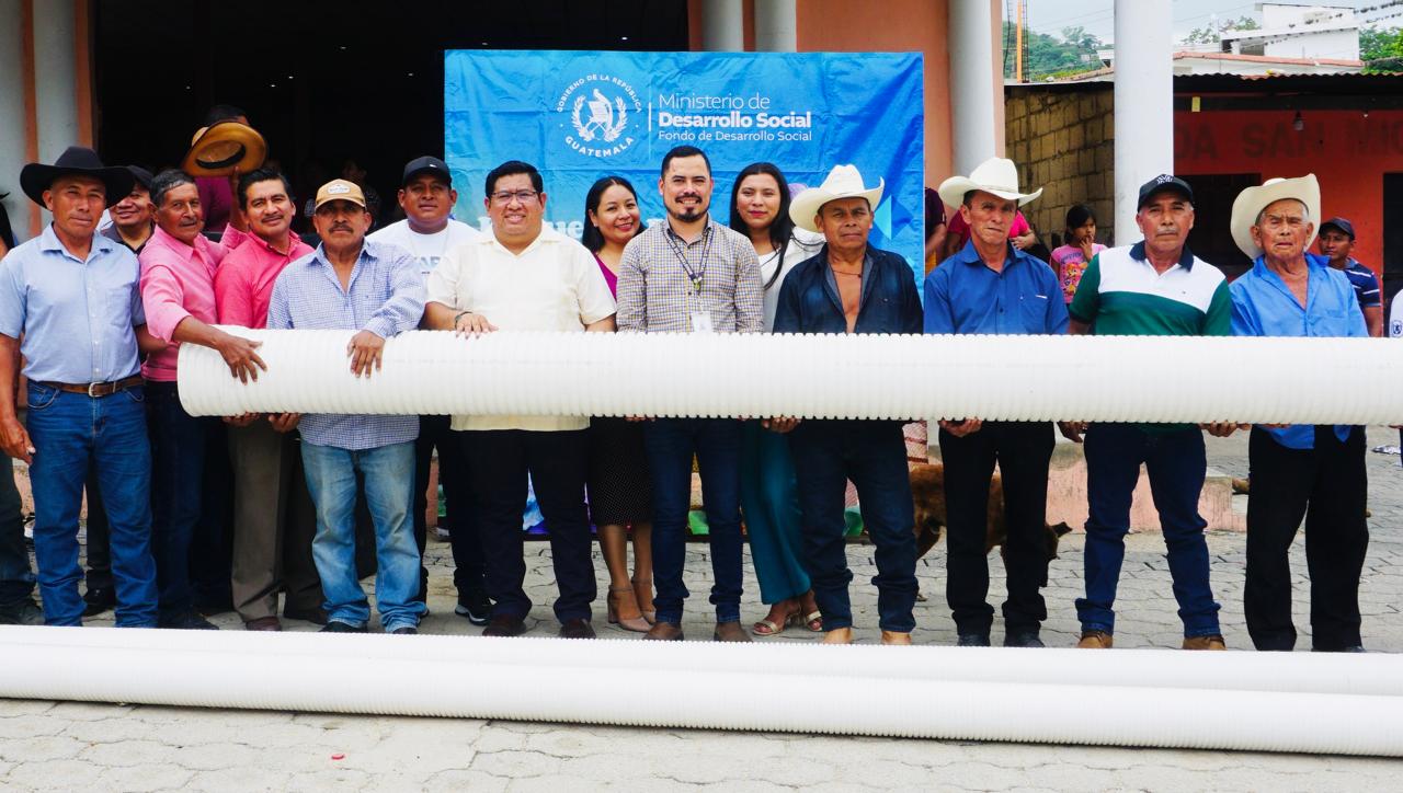 Chiquimula, junio 2025. Después de más de 20 años de espera, las familias de la aldea Maraxcó, ubicada en el corredor seco del departamento de Chiquimula, están dando un paso histórico hacia una vida más digna y con bienestar comunitario. Gracias a la intervención del Ministerio de Desarrollo Social (Mides), a través del Fondo de Desarrollo Social (Fodes), fue entregada una dotación de 1,285 tubos para la instalación de su primer sistema de drenajes y la introducción de agua potable, junto con 10 tinacos para almacenamiento.