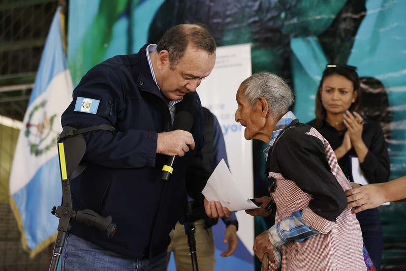 El Presidente de la República, Alejandro Giammattei junto a la Viceministra de Empleo y Previsión Social, Geovanna Salazar entregaron notificaciones a beneficiarios del PAM en Santa Cruz Barillas, Huehuetenango. El objetivo es dar cumplimiento al alcance de mayor cobertura de este programa a nivel nacional, dignificando a las personas de la tercera edad.