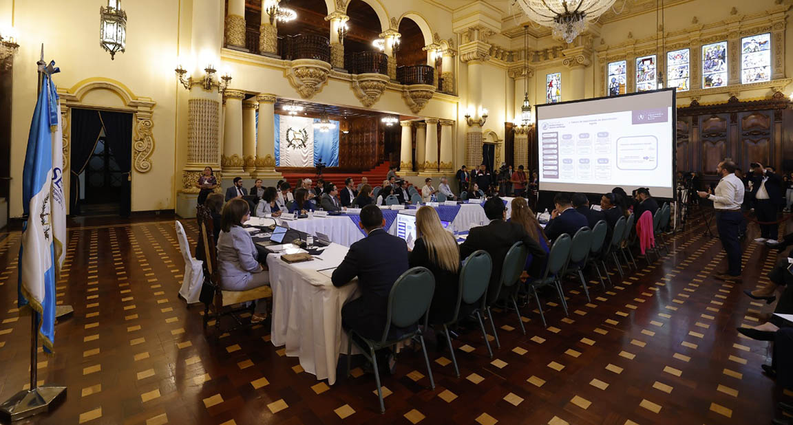 En la reunión estuvieron presentes funcionarios del gabinete ministerial, entre ellos, la ministra de Trabajo y Previsión Social, Miriam Roquel; la ministra de Educación, Anabella Giracca, y la secretaria de la Secretaría de Seguridad Alimentaria y Nutricional (SESAN), Mireya Palmieri.