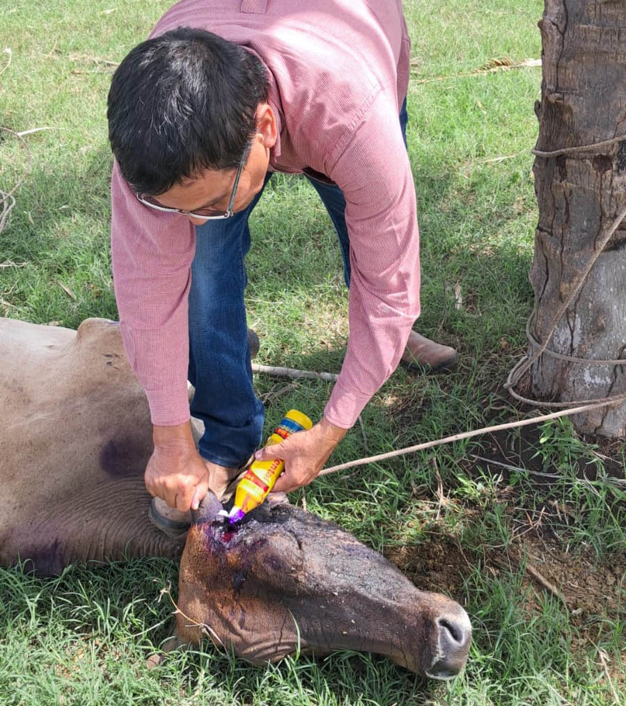 Tras recibir la notificación, que fue generada por una vecina, el equipo del MAGA de la localidad llegó inmediatamente para inspeccionar al animal, localizar la herida que presentaba GBG y aplicar los productos correspondientes de uso veterinario para la desinfección.