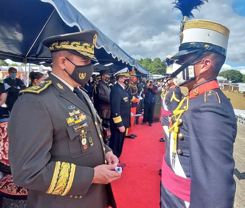 Este viernes 17 de diciembre, se llevó a cabo la clausura del ciclo lectivo 2021 y la graduación de la Promoción 157 de Damas y Caballeros Cadetes de la Escuela Politécnica, quienes luego de terminar cuatro años de arduos estudios, completaron su formación como Oficiales del Ejército de Guatemala. El acto solemne de graduación estuvo presidido por el Alto Mando del Ejército de Guatemala, encabezado por el Presidente Constitucional de la República y Comandante General del Ejército, Alejandro Giammattei, quien en su discurso instó a los nuevos Oficiales a “poner en práctica todo lo aprendido, dirigiendo a las Fuerzas de Aire, Mar y Tierra que defienden a la población y a la democracia día con día”.