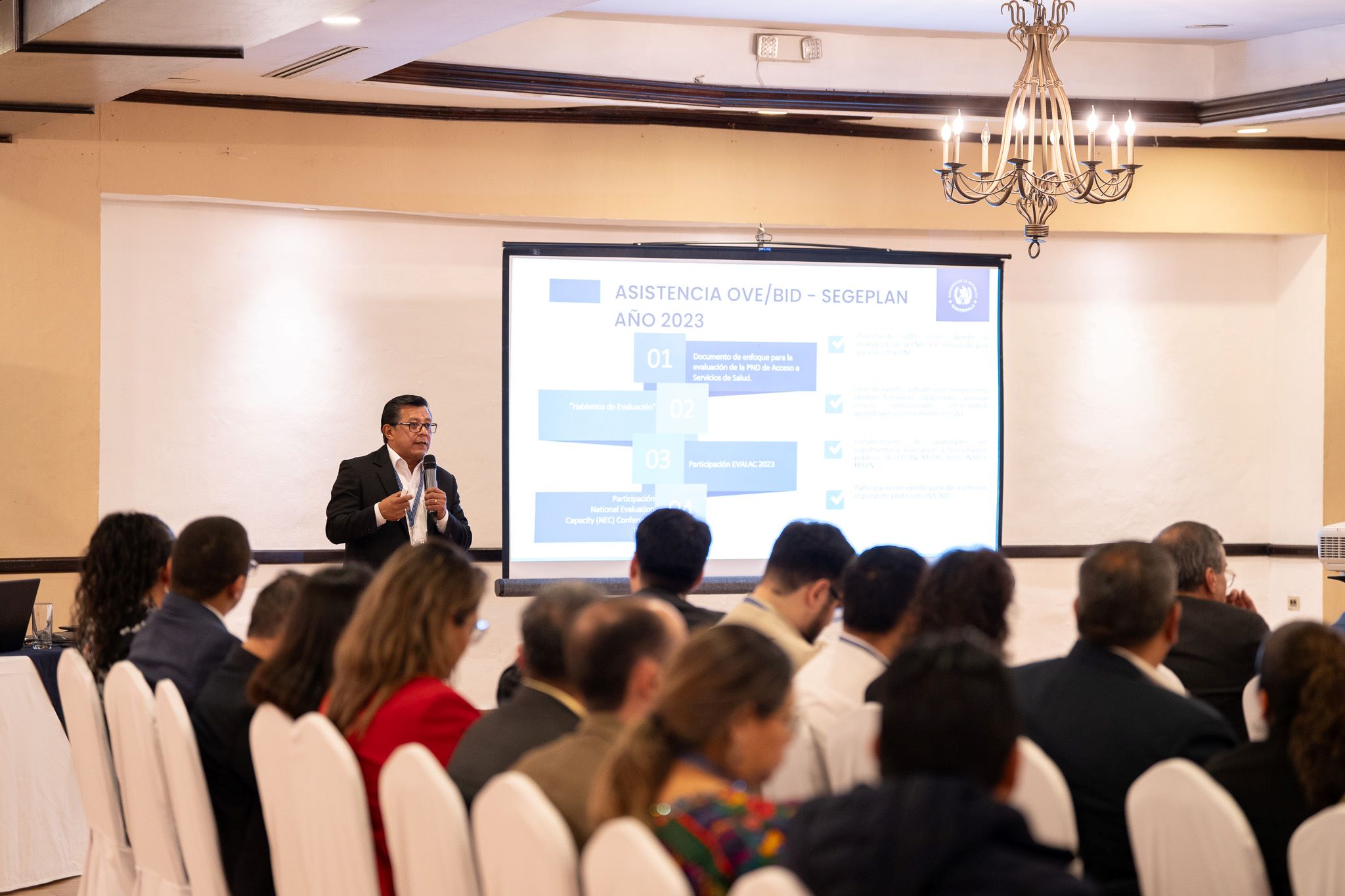 El encuentro estuvo presidido por el titular de la Secretaría de Planificación y Programación de la Presidencia (SEGEPLAN), Carlos Mendoza, y el subdirector de la Oficina de Evaluación y Supervisión del Banco Interamericano de Desarrollo (OVE/BID), Jozef Vaessen.