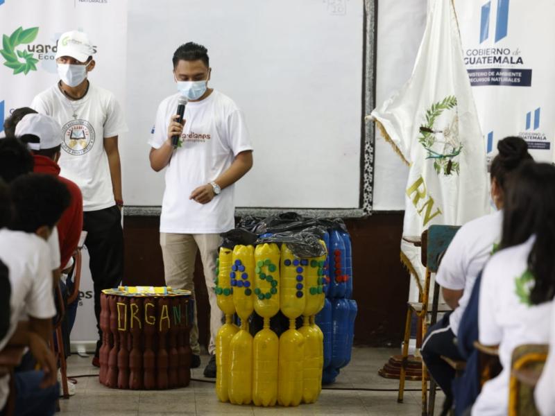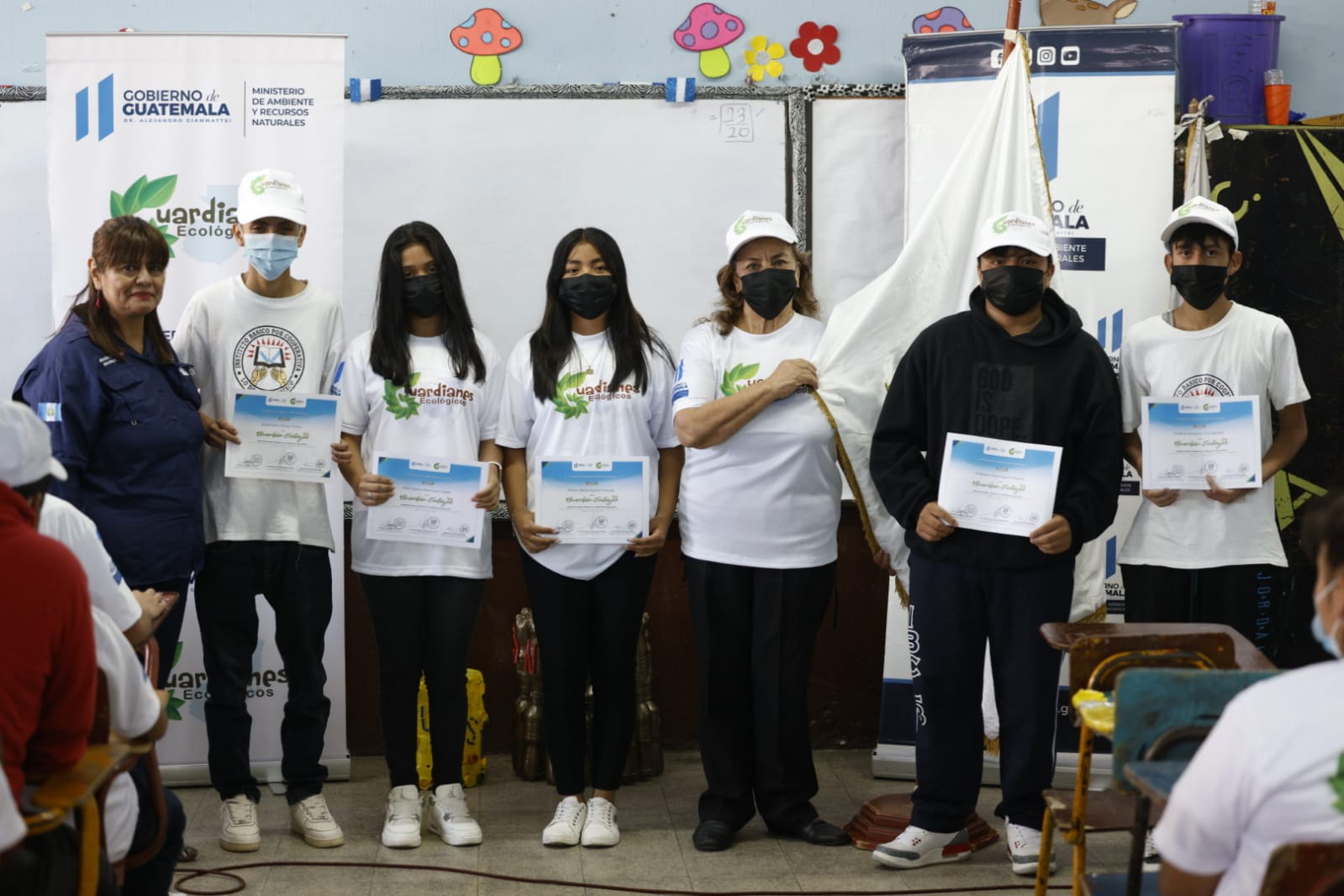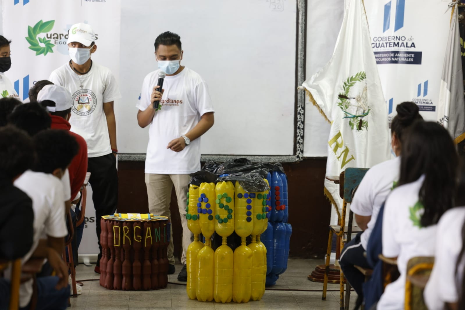 La importancia del reciclaje y la clasificación de los desechos sólidos fueron temas claves que aprendieron y ponen en práctica 120 alumnos del Instituto Básico por Cooperativa "Lo de Bran I" Mixco, quienes recibieron su certificación como Guardianes Ecológicos.