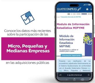 El Sistema de Información de Contrataciones y Adquisiciones del Estado (Guatecompras), administrado por la Dirección General de Adquisiciones del Estado (DIGAE), habilitó un módulo que facilita las consultas públicas sobre la participación de las Micro, Pequeñas y Medianas Empresas (mipyme) en los procesos de adquisición.