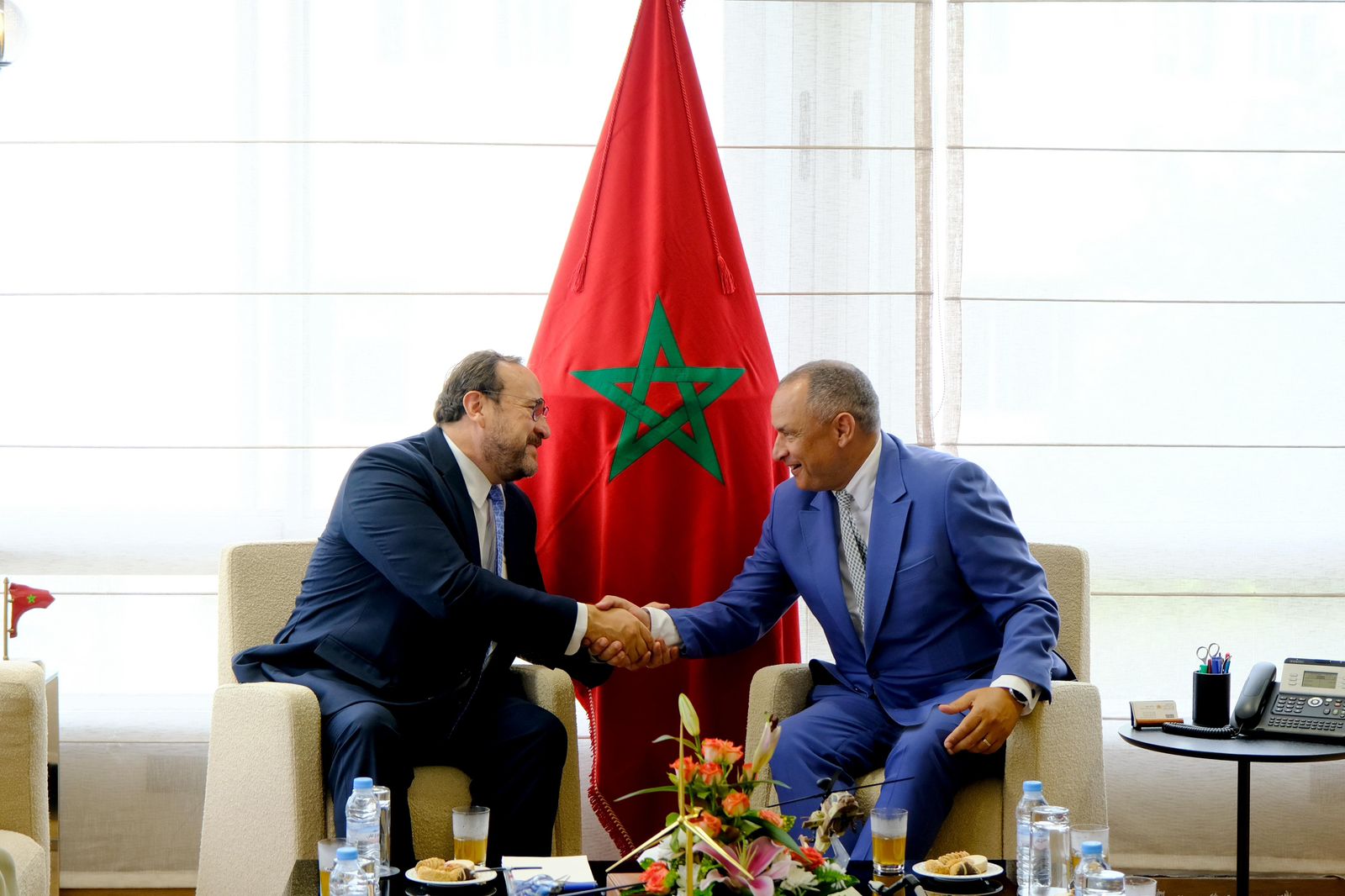 Rabat, Marruecos, 9 de septiembre de 2025. Con el propósito de fortalecer los vínculos comerciales entre Guatemala y Marruecos, el Embajador de Guatemala en ese país, Marco Tulio Chicas, fue recibido por el Excmo. Sr. Ryad Mezzour, Ministro de Industria y Comercio.