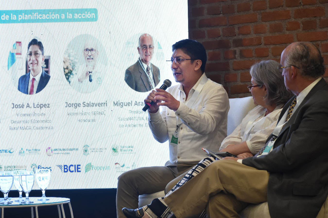 El viceministro de Desarrollo Económico Rural del MAGA, José Antonio López, intervino en el panel “Políticas de adaptación: de la planificación a la acción”, en donde hizo un llamado al fortalecimiento institucional de las entidades que trabajan en el territorio y a la construcción de una agenda regional común, enfocada en responder a las prioridades de las comunidades más vulnerables.