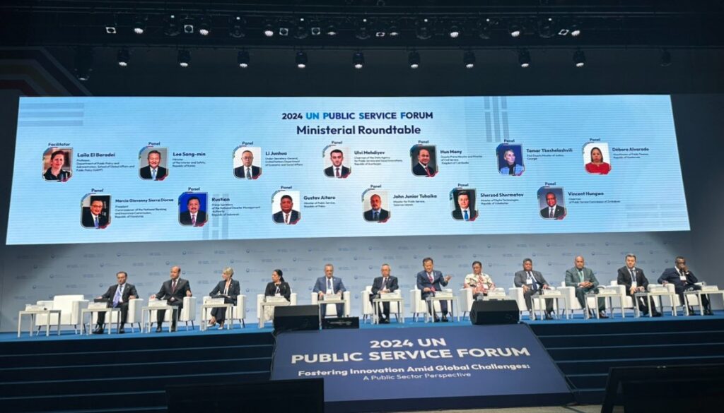 En representación del Gobierno de Guatemala, la viceministra de Administración Interna y Desarrollo de Sistemas del Ministerio de Finanzas Públicas, Débora Alvarado, participó en el Foro de Servicio Público de las Naciones Unidas (ONU) 2024, realizado en Incheon, Corea del Sur, bajo el lema “Fomento de la innovación en medio de desafíos globales: una perspectiva del sector público«.