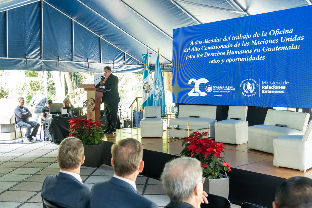 Ciudad de Guatemala, 8 de diciembre de 2025. El Ministerio de Relaciones Exteriores (MINEX), junto con la Oficina del Alto Comisionado de las Naciones Unidas (OACNUDH) en Guatemala, conmemoraron el vigésimo aniversario de la la OACNUDH en el país.