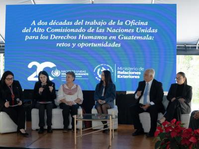 En ocasión de esta importante efeméride, se organizó un conversatorio titulado “A dos décadas del trabajo de la OACNUDH en Guatemala: retos y oportunidades”, con el fin de reflexionar sobre estos 20 años de acompañamiento técnico, observación, capacitación y fortalecimiento institucional en materia de derechos humanos.