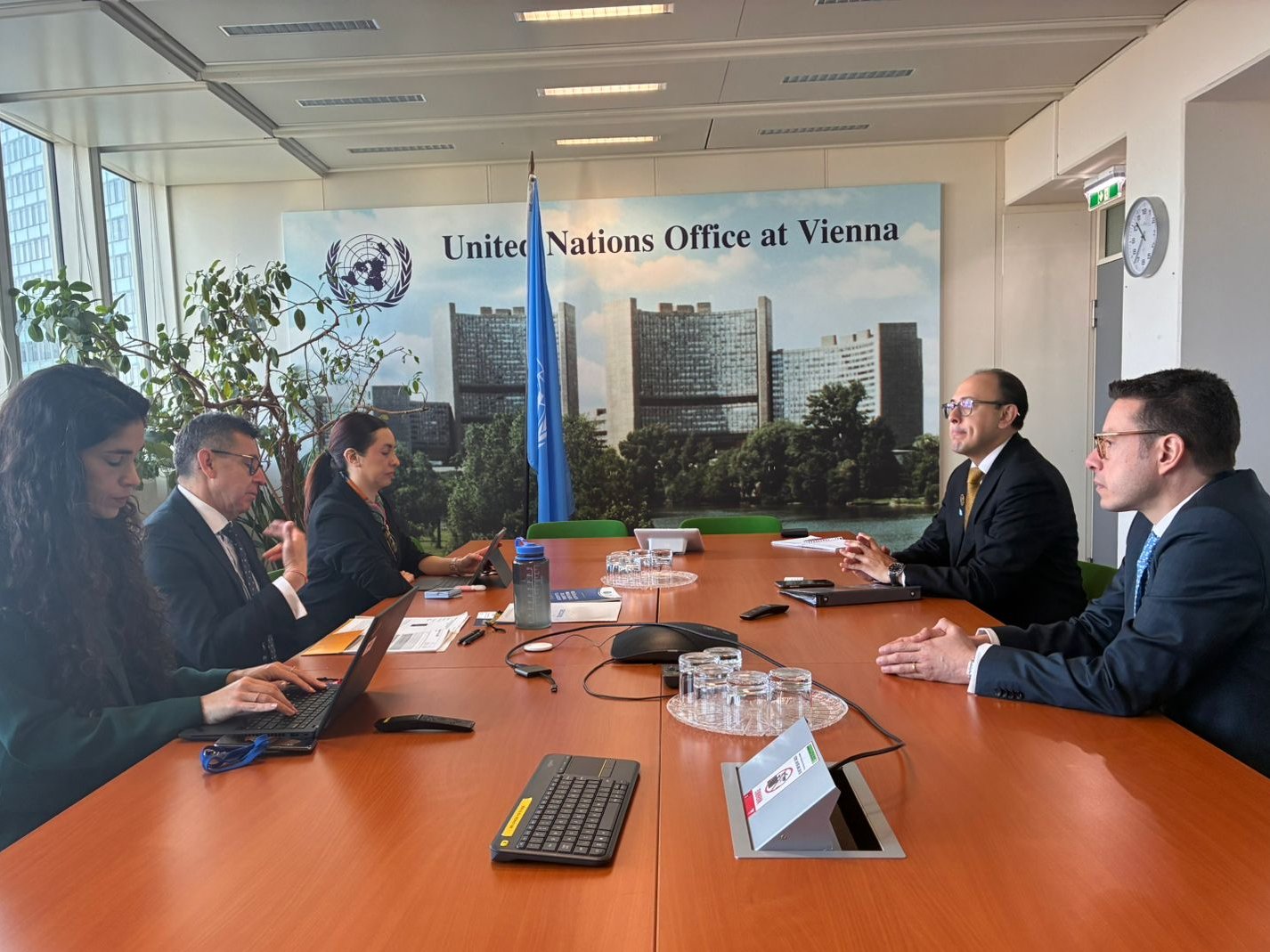 Viena, Austria, 10 de marzo de 2026. En el marco del 69.º período de sesiones de la Comisión de Estupefacientes (CND, por sus siglas en inglés) de las Naciones Unidas, Guatemala sostuvo una reunión con el jefe de la Sección Regional para América Latina y el Caribe de la Oficina de las Naciones Unidas contra la Droga y el Delito (ONUDD), Jorge Ríos.