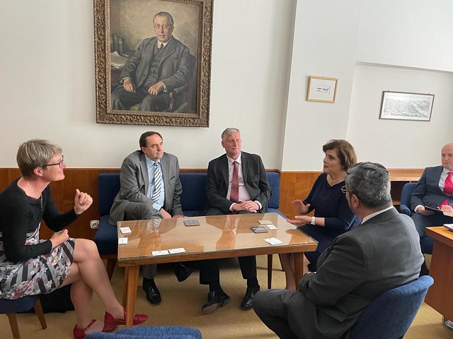 La funcionaria se reunió con la vicedecana de Relaciones Internacionales de la universidad y exjefa del Centro de Estudios Iberoamericanos, Markéta Křížová, con quien abordó el tema de patrimonios culturales. En particular, conversaron sobre los 14 monumentos protegidos por la Organización de las Naciones Unidas para la Educación, la Ciencia y la Cultura (Unesco) y más de 2 mil castillos que tiene la República Checa, cultura que fue creada por influencias eslavas, alemanas y judías.