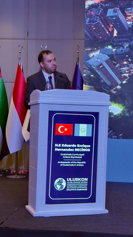 Malatya, Türkiye, 6 de agosto de 2025. La Embajada de Guatemala en Türkiye participó en el East Anatolia Cooperation Forum, desarrollado este día en la ciudad de Malatya, donde se abordaron temas relacionados con la cooperación y el desarrollo de la economía global. El evento es organizado por la Confederación Internacional de Inversiones y Negocios (ULUSKON por sus siglas en turco).